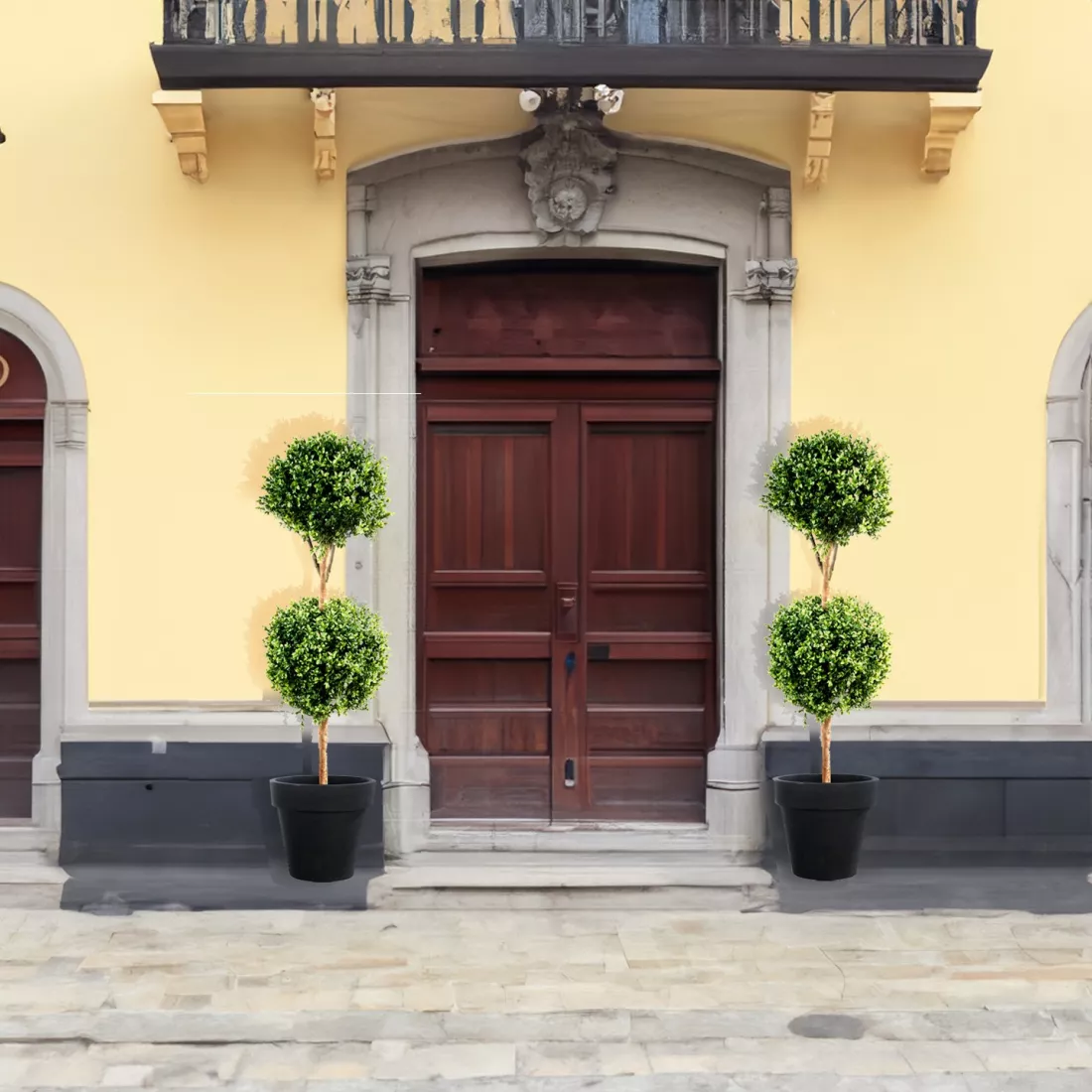 Les boules de buis artificielles sur tige double boule donnent du volume et de l'architecture aux jardins.