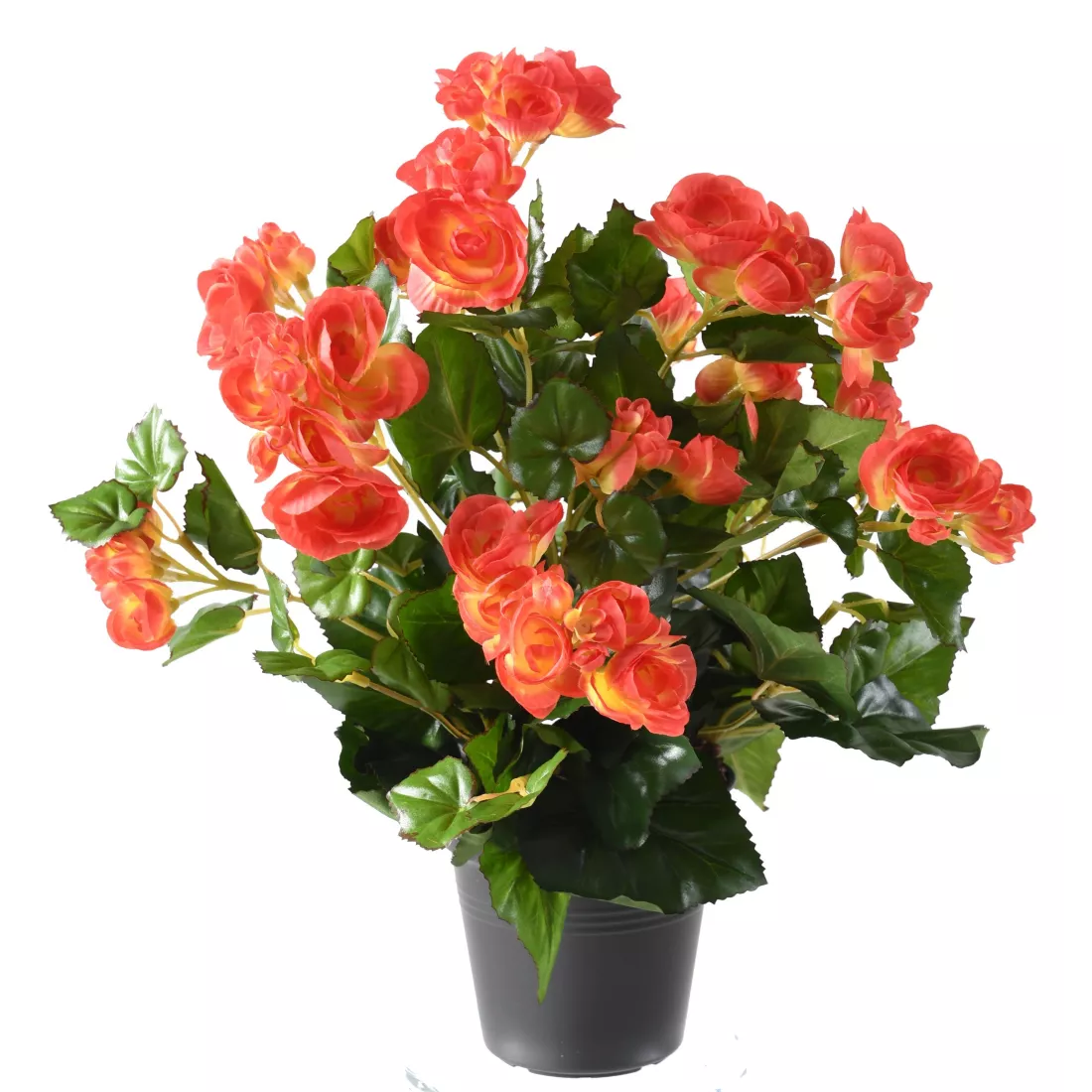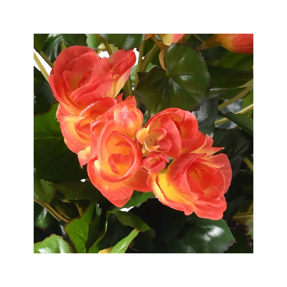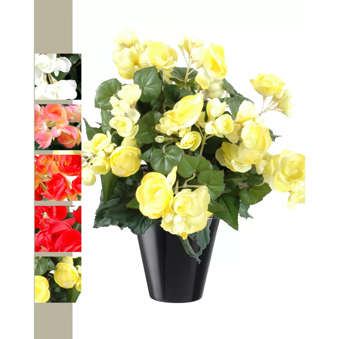 En choisissant l'option faux bégonias plus de questions à se poser. Est-ce l'époque? Quand fleurit-il? Puis-je le mettre dehors? Vous pourrez l'installer dans votre maison pour profiter toute l'année de ses grappes de fleurs pétillantes de couleur; vous le garderez longtemps. Communément, pour une durée plus courte sans entretien, vous pourrez également le planter à l'extérieur pour égayer une jardinière ou le placer dans un joli cache pot disposé sur une table, un muret. Dans les emplacements un peu ventés, pensez à lester le contenant s'il n'est pas fixé. Pour réaliser une belle potée fleurie avec un bégonia artificiel associez des petits cyprès verts ou vert/jaune, des anthémis marguerites, des faux géraniums, des impatiens artificielles.