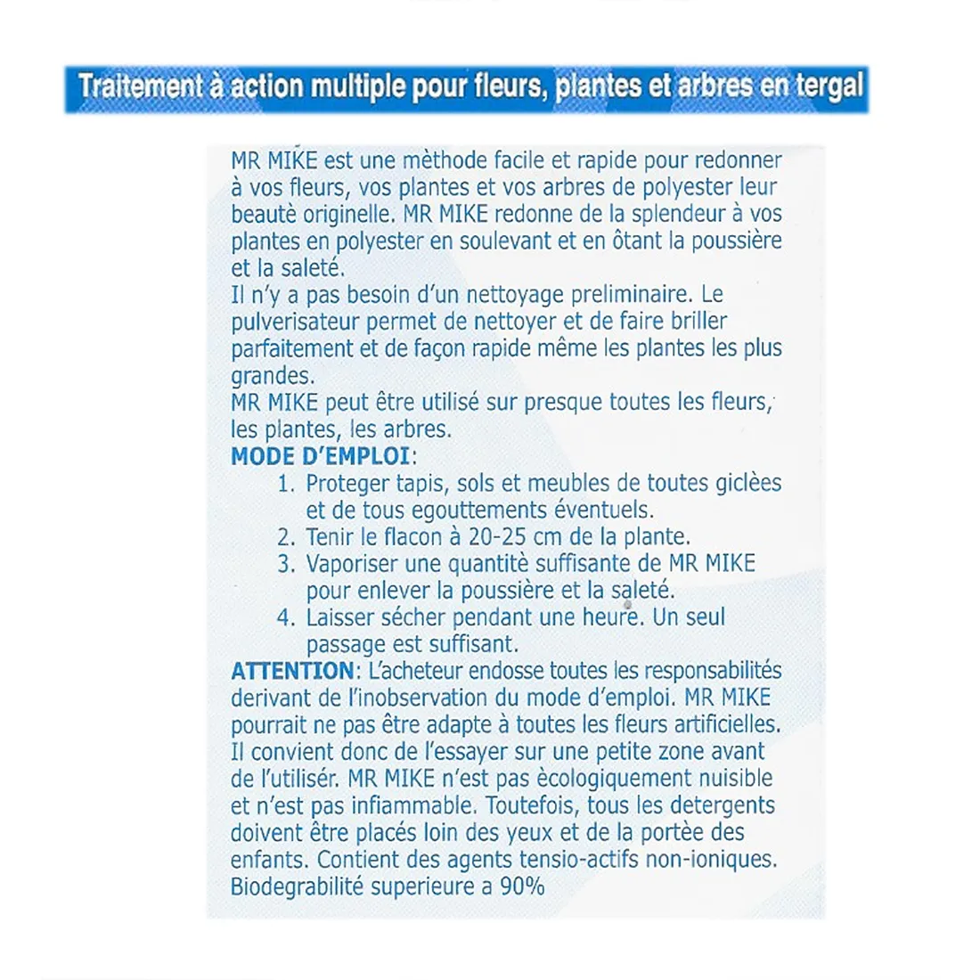 Mr Mike est une méthode facile pour redonner à vos plantes et vos arbres artificiels leur beauté originelle.