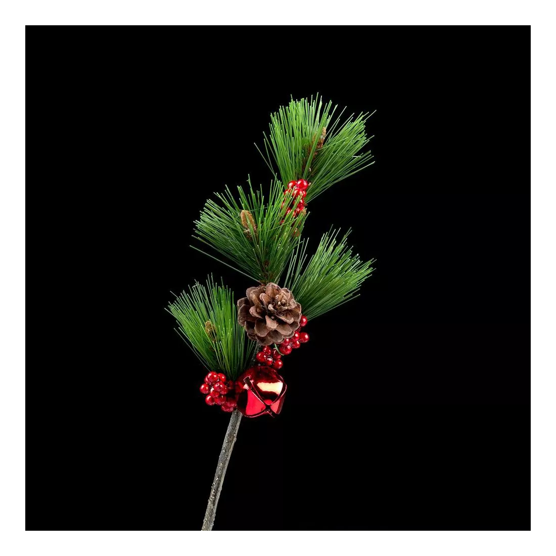 Cette petite branche de faux sapin sont montées sur fil de fer recouvert de pvc marron. Les épines dures sont très bien imitées. Chaque tige de pin factice comprend une pomme de pin naturelle, des baies rouge et un grelot qui tintinnabule lorsqu'on le secoue. Nous sommes bien à Nöel! Peut s'accorder avec la couronne verte et rouge.