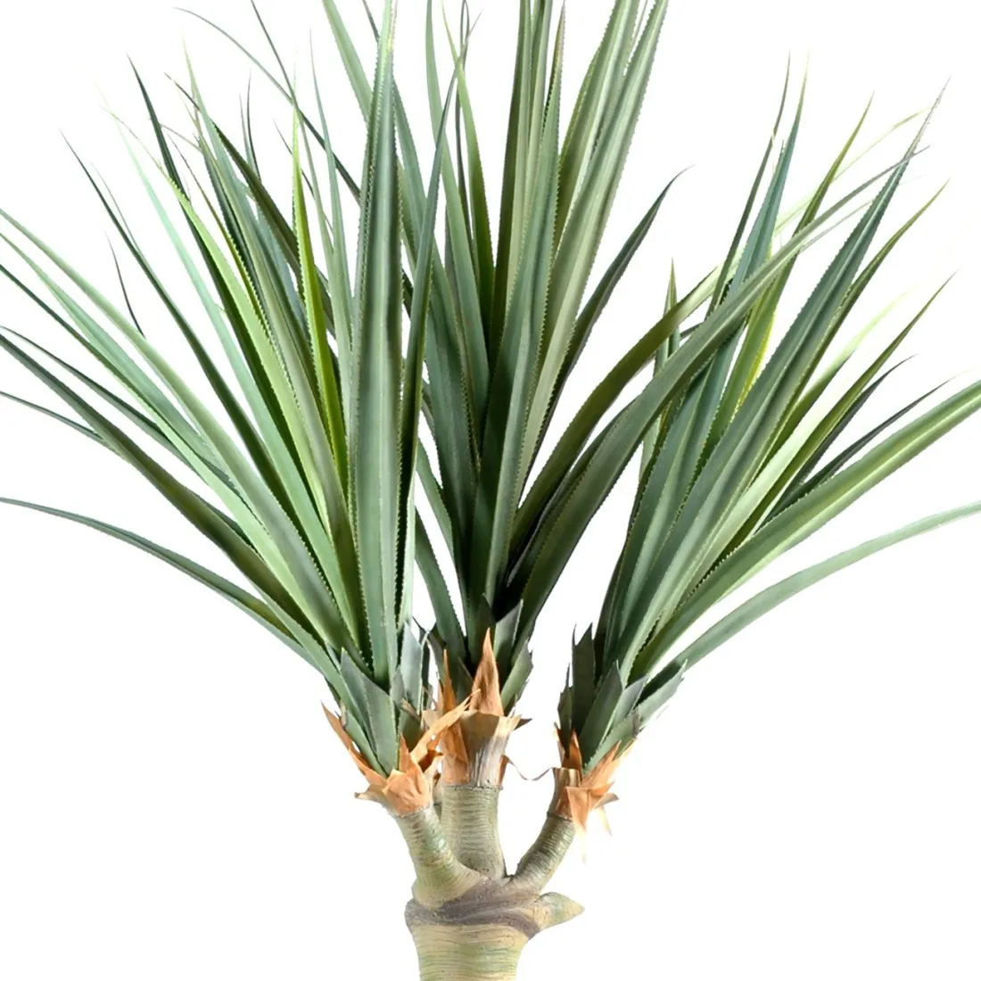 Cet arbre qui se situe entre le palmier et le yucca pousse sur le littoral des zones tropicales indiennes et pacifiques. Prisé pour sa silhouette exotique, surmonté de feuilles détaillées, qui sont bordées de petites pointes. Les feuilles de différentes longueurs aux différentes nuances de vert, plus claires au centre, contribuent à l'aspect naturel de la plante. Ses 4 têtes sont de deux tailles une de 140 cm et trois de 95 cm. Cette plante verte artificielle est une plante tropicale. Il est livré sur une plaque de fixation. Cet arbre artificiel de haute qualité et très réaliste ne nécessite aucun entretien particulier et a une longue durée de vie.