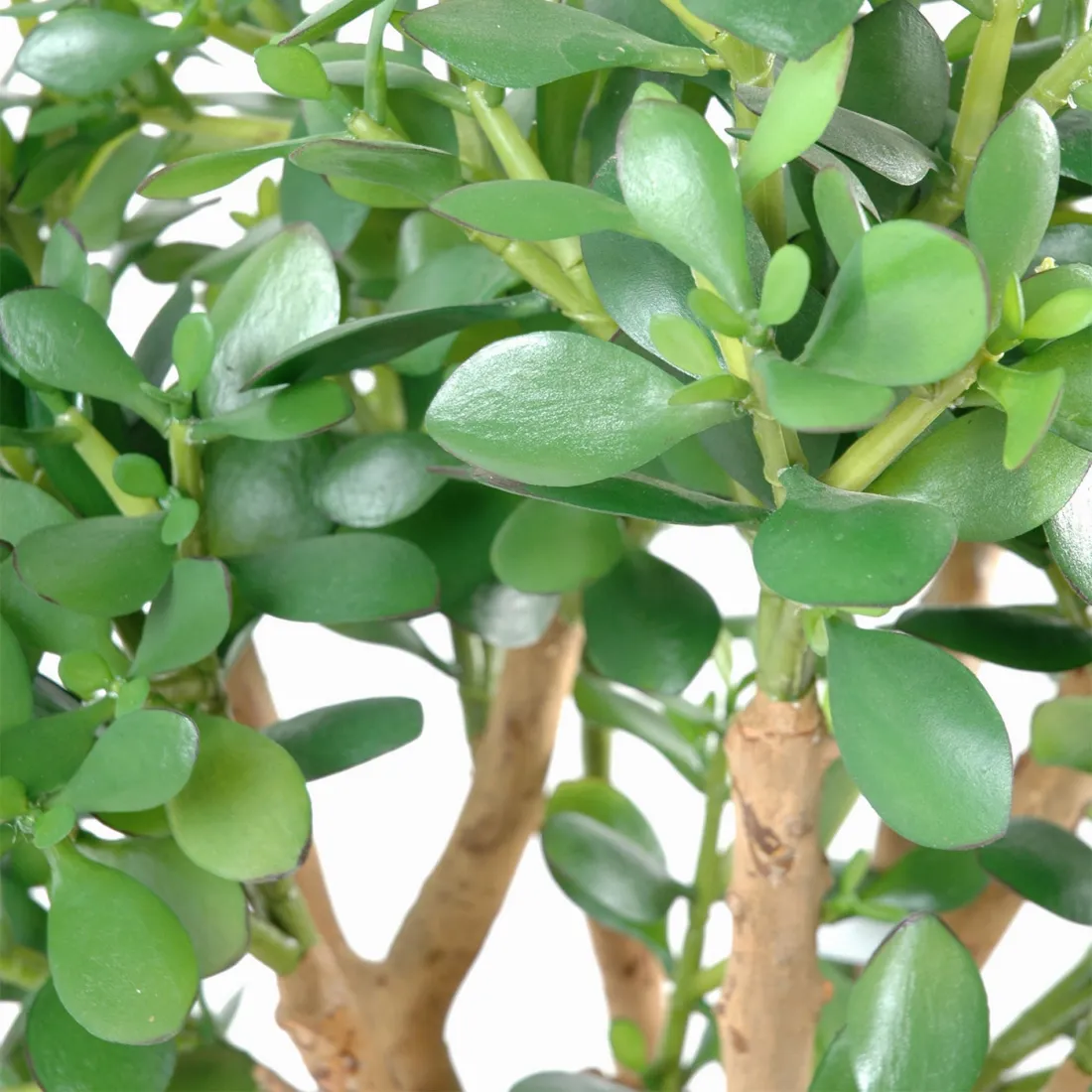 Cet arbre de jade artificiel ou crassula ovata est une plante succulente fortement appréciée pour ses feuilles épaisses, c'est une très bel plante d’intérieur. disposé seul dans un pot haut il apportera une touche originale et moderne à votre décoration intérieure. Cette succulente artificielle disposé dans une jardinière avec d'autres succulentes ou placé dans une décoration de rocailles.