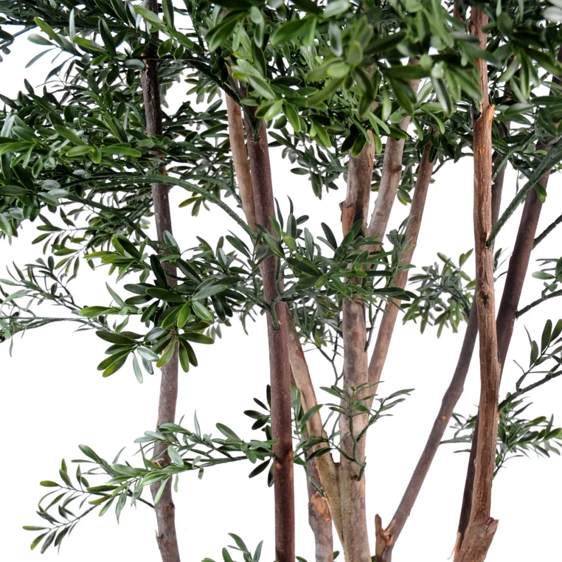 Le saule artificiel possède des petites feuilles allongées en plastique. Cette matière permet d'exposer ce faux arbuste en extérieur et le rend bien moins sensible aux UV qu'un arbre artificiel au feuillage textile. Vous garderez votre saule américain plus longtemps si vous évitez les lieux ventés qui peuvent fragiliser les jonctions branches/feuillages. Il en est de même pour les grosses intempéries comme la grêle et la neige abondante. Le saule est décliné sous forme de bonsaï 50cm ou 70cm, très bien réalisé également.