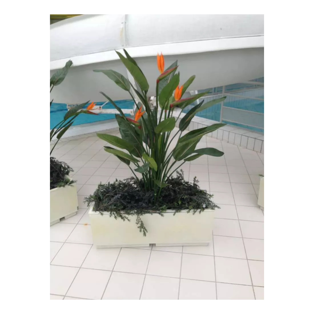 Ce strelitzia artificiel, plante exotique artificielle proposé en 3 dimensions 95 à 150 cm de hauteur pour une envergure de 40 à 100 cm, fleurs en tergal enduit et feuillage en matière textile pour une meilleur ressemblance du naturel. Livré dans un pot PVC (support de plantation) plantes artificielles
