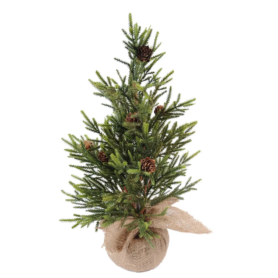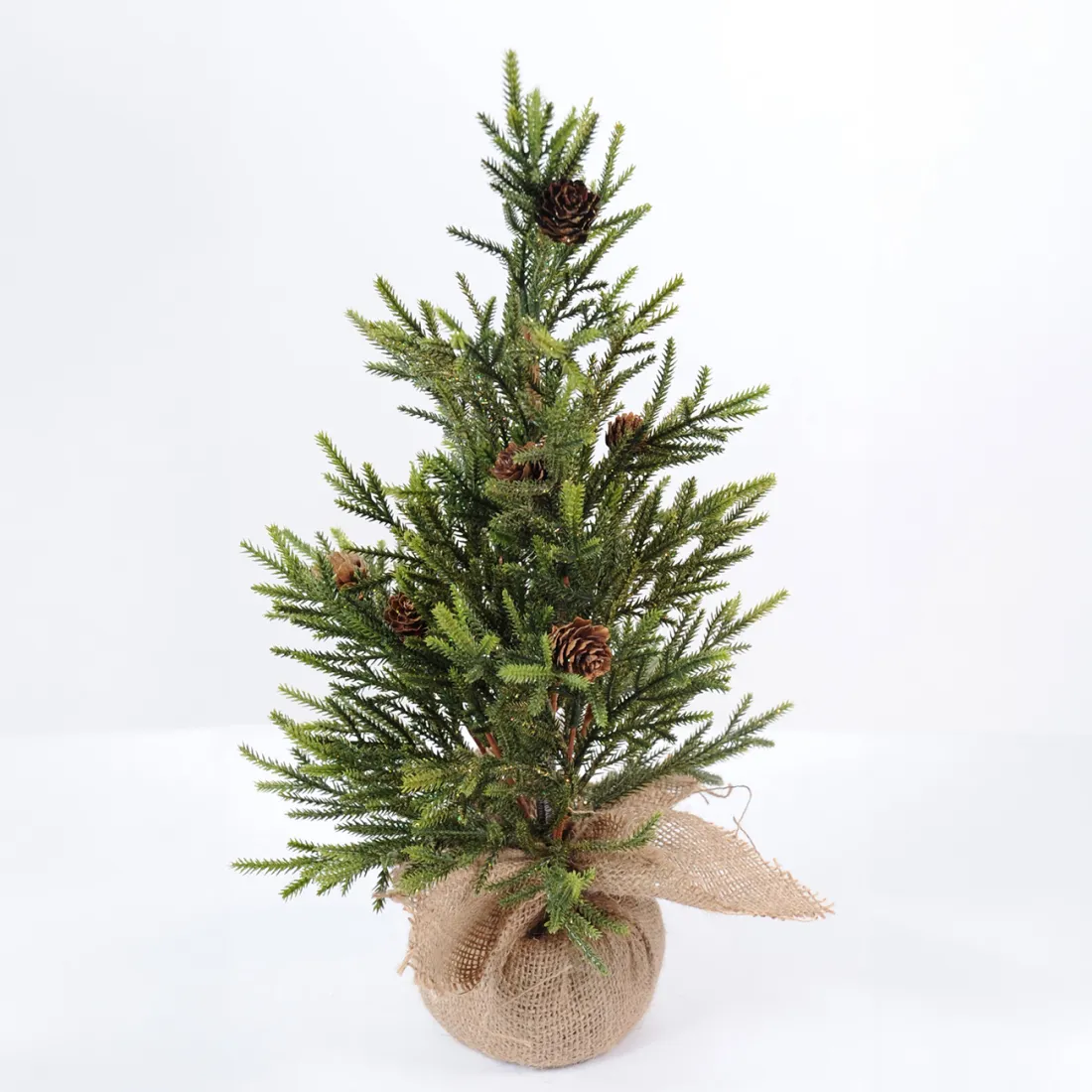 Sapin artificiel feuillage plastique livré dans un petit sac de jute ( cf photo)