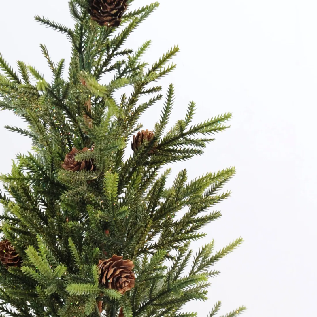 Un petit sapin artificiel pailleté or de 60 cm de hauteur. Ce sapin, à la fois élégant et pratique, est l’élément parfait pour créer une ambiance festive, que ce soit sur une table, sur un bureau ou sur une étagère. Les paillettes, délicatement appliquées, apportent une touche de brillance. Ce sapin, avec son feuillage en plastique de qualité, est conçu pour résister à l’épreuve du temps tout en conservant son éclat. Un des aspects les plus réalistes de ce petit sapin est la présence de pommes de pin. Ces petites touches naturelles apportent une authenticité indéniable à l’ensemble. Vous pouvez également y ajouter une guirlande électrique à micro LED fonctionnant sur piles pour une ambiance encore plus lumineuse.