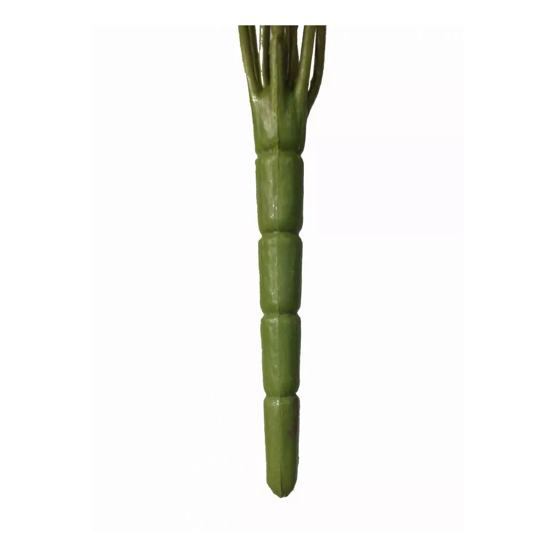 Fougère de Boston artificielle version fine, 2 dimensions au choix : 48 cm de longueur de feuilles pour une envergure d’environ 65 cm et un total de 21 frondes ; 65 cm de longueur de feuilles pour environ 80 cm d’envergure et 24 frondes. Son feuillage artificiel délicat est composé de fines feuilles synthétiques légères et ondulées en tissu (tergal), fixé sur tiges métalliques de différentes longueurs recouvertes de polyéthylène vert qui vous permettront d’ajuster le port de la plante. Cette fausse fougère de Boston est munie d’un piquet d’environ 8 cm en métal recouvert de plastique (pot vendu séparément).