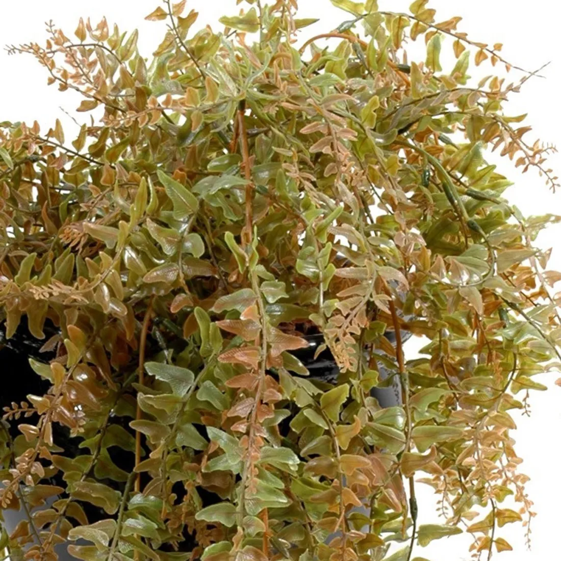 Cette chute synthétique ornementale à feuillage chatoyant forme un beau tapis feuillu aux couleurs d’Automne. Elle se plait particulièrement bien en suspension dans le vide ou contre une grille, seule ou accompagnée, où ses tiges retombent élégamment. Elle s'intègre parfaitement bien dans les potées de plantes vertes cascades. Elle est parfaite dans un décor industriel où le bois naturel côtoie le métal. Cette fougère artificielle d’extérieur apportera de la couleur et du relief visuel à un mur végétal artificiel. Cette belle plante artificielle décorative bien imitée vous ravira par sa longue durée de vie et son esprit moderne.
