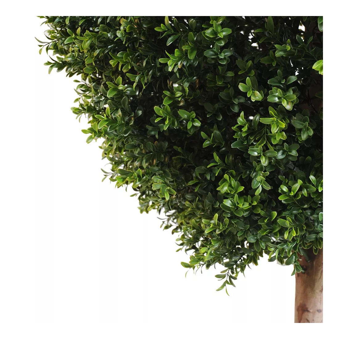 Conseil du décorateur :Branches feuillues montées sur tronc en bois. Feuillage dense. Aspect " repousse de printemps ". souvent utilisée par paireCe faux buis est bluffant par son visuel.