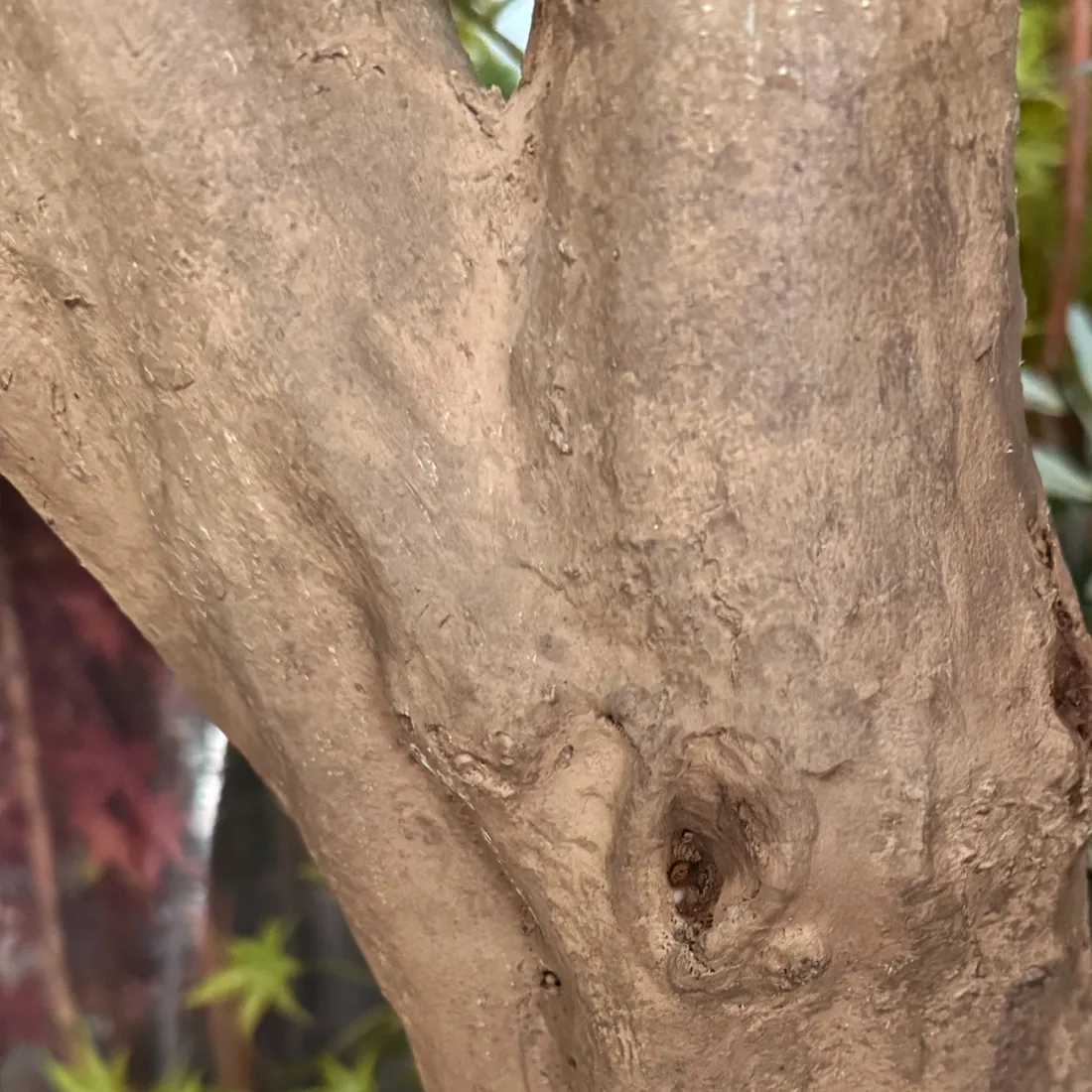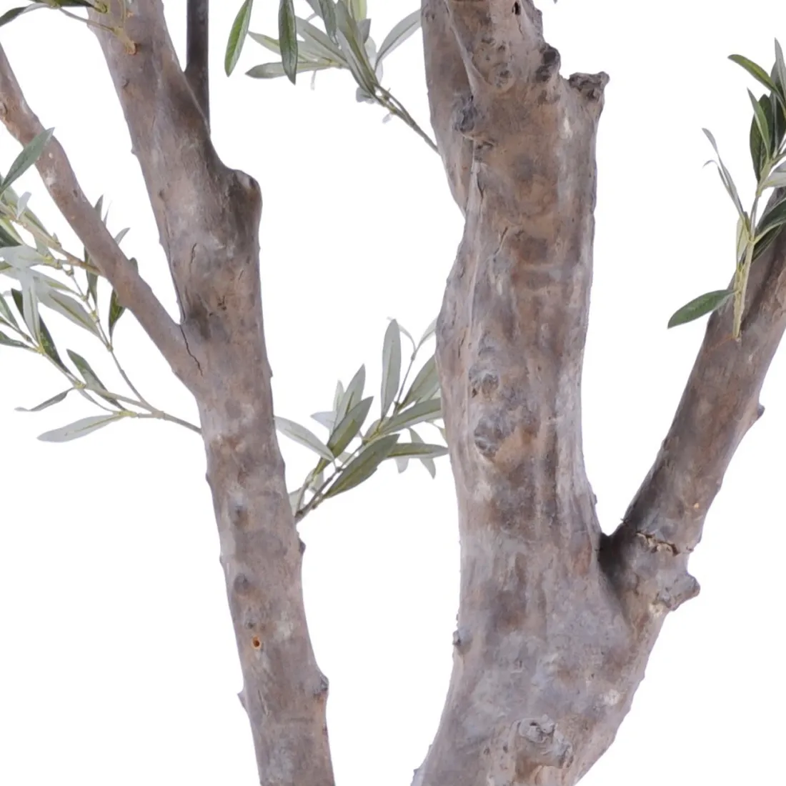 Splendide olivier au tronc imitation bois très réaliste. En isolé dans les halls d'entrée, dans une pièce spacieuse dans un pot rond avec un surfaçage de caillou blanc ou de mousse artificielle ou d'écorce de pin... En associé avec des onions grass à la base avec un oranger artificiel ou un citronnier artificiel
