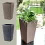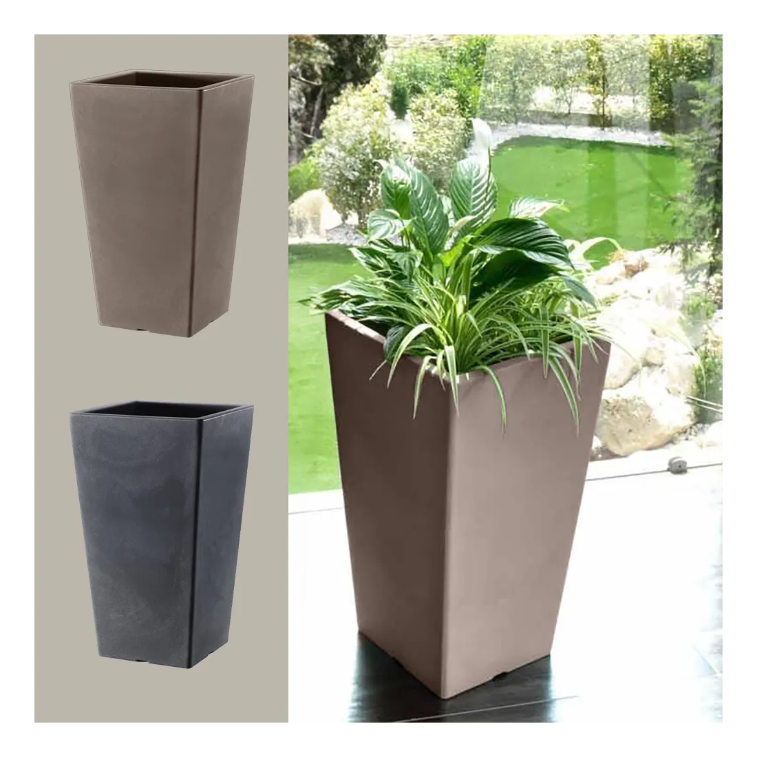 Les pots Piazza se distinguent par leur forme conique élégante et leur finition mate, qui présente une texture légèrement rugueuse au toucher. Fabriqués en résine de haute qualité, ces pots allient modernité et durabilité. Leur composition est respectueuse de l'environnement, étant à la fois non toxique et recyclable. De plus, ils sont très légers, ce qui les rend faciles à déplacer, tout en étant résistants aux chocs.