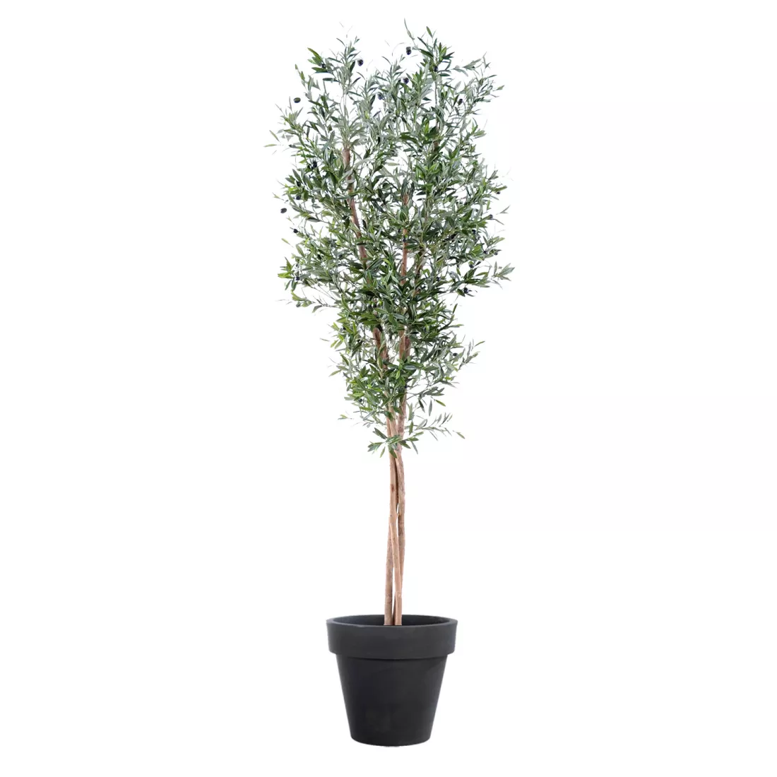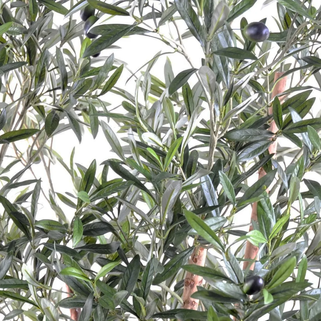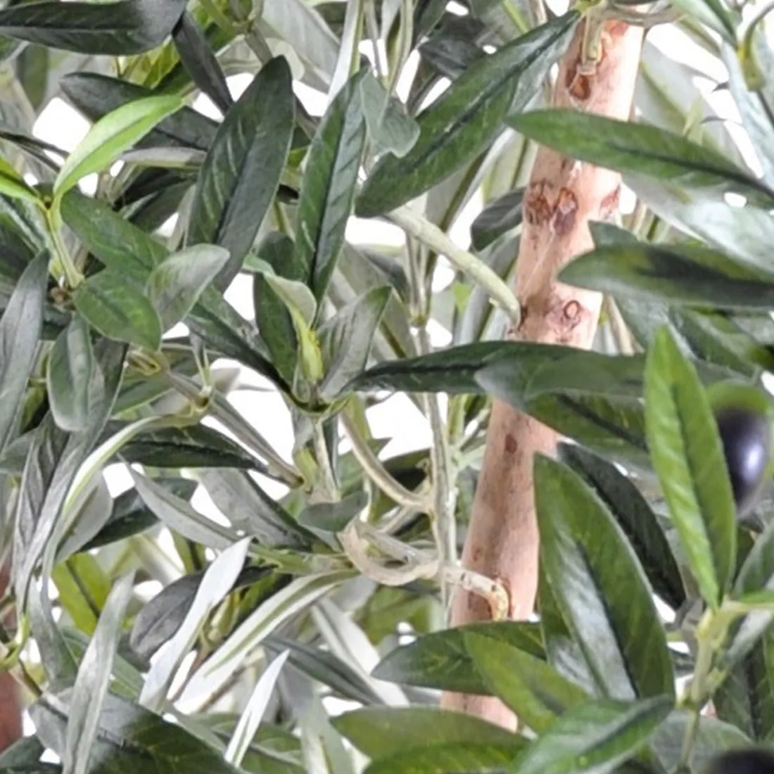 olivier artificiel disponible en trois dimensions 150 à 210 cm de hauteur pour une envergure de 60 à 80 cm. Ses 3 troncs en bois, son feuillage textile et ses faux fruits  en font une belle imitation Livré dans un support plastique ( plantes artificielles ). Arbuste du bassin méditerranéen.