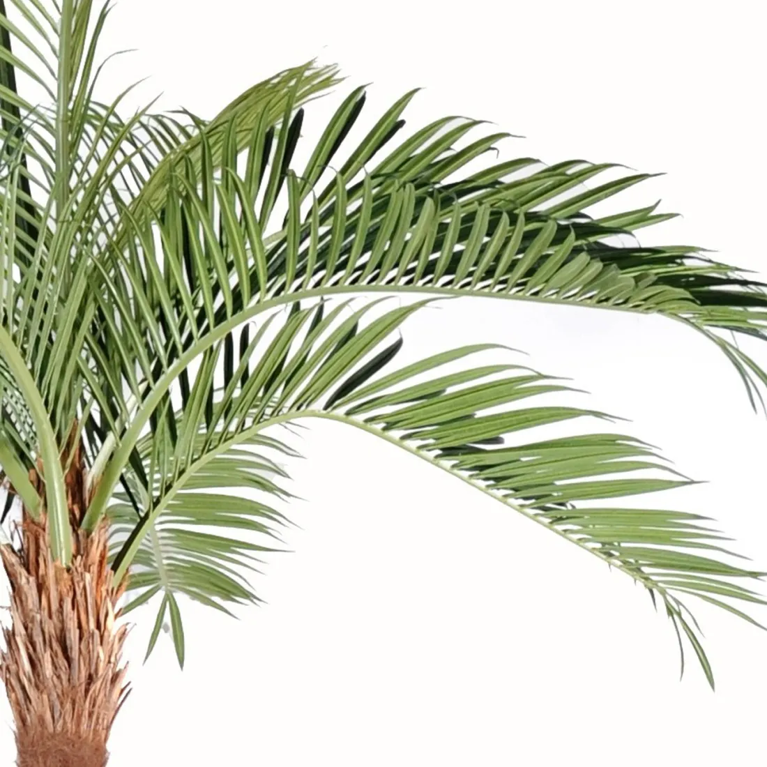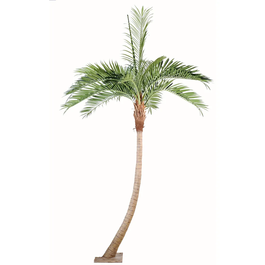 Ce superbe palmier Phoenix artificiel au tronc courbé est composé d'un tronc en fibre de verre et d'un feuillage vert en tergal. Décliné en trois dimensions de 270 à 700 cm de hauteur.. Livré avec une plaque de fixation ( plantes artificielles ). Voir ci dessous le tableau descriptif.