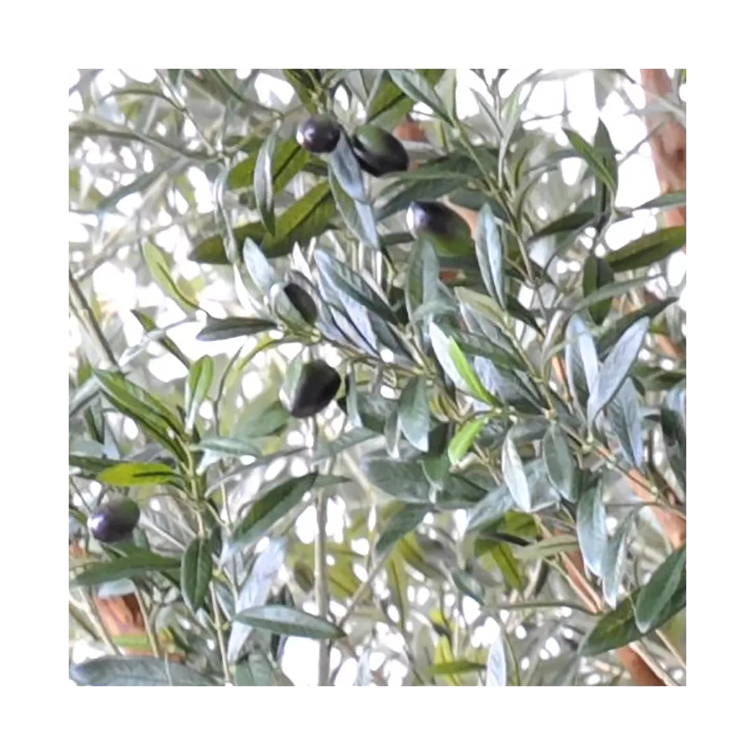 Cet olivier artificiel est composé d'un tronc en fibre de verre et de bois naturel, d'un feuillage en tergal, avec des fausses olives de couleur noires. La taille pour cet arbre artificiel est de 350 cm de hauteur pour une largeur 330 cm. Tronc de diamètre 30 cm. Livré sur platine de fixation ( plantes artificielles )
