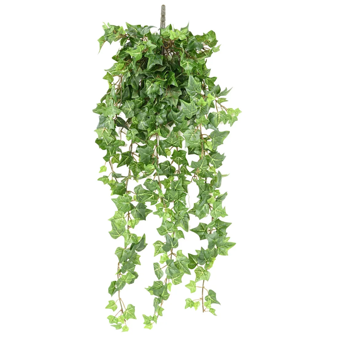 Le lierre est une plante commune de nos régions qui tapisse la plupart de nos sous bois. Ce lierre artificiel est la réplique synthétique du lierre commun ou lierre Hedera Helix. Cette plante artificielle réalisée à partir d'un feuillage en tissu monté sur dix huit tiges armées, ramures, armature en métal recouverte de PVC vert, décomposé par 3 ramures de 60 cm, 3 de 38 cm, 3 de 24 cm et 9 de 12 cm ces différentes longueurs permettent d'obtenir un rendu plus naturel, c'est une belle fausse plante ornementale, haut de gamme. Ce faux lierre vous est proposé dans deux coloris soit vert avec des nervures plus claires, soit vert de différentes teintes panaché de crème, réplique fidèle du naturel.