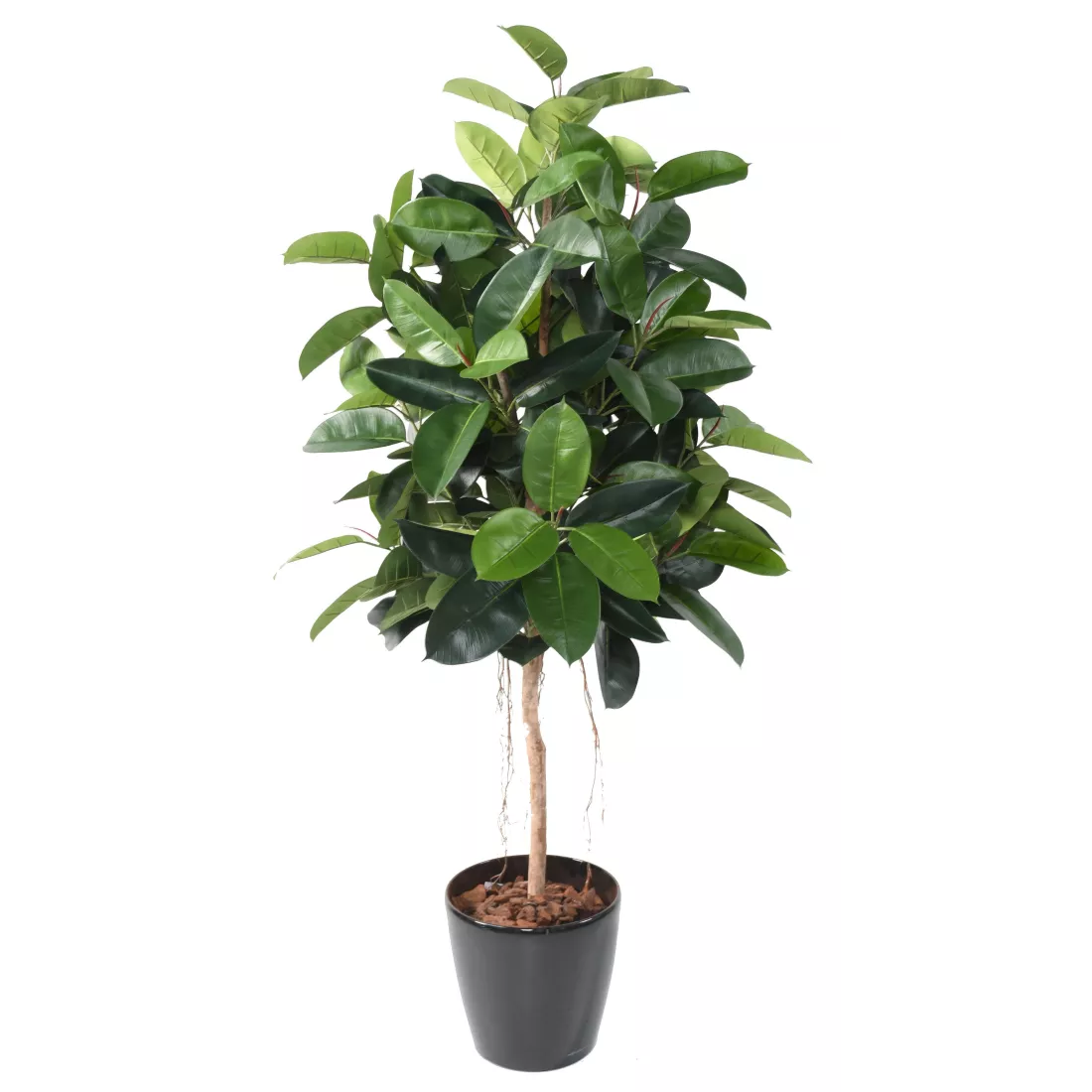 Ficus artificiel Elastica Buisson ou Rubber Plant composé d'un tronc en bois naturel et d'un feuillage en tergal. Trois déclinaisons de ce faux ficus 110, 150 et 180 cm de hauteur et de 40 à 60 cm de largeur selon la taille. Dispose de quelques racines aériennes à la base du feuillage. Livré dans un support plastique ( plantes artificielles )