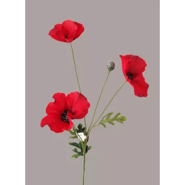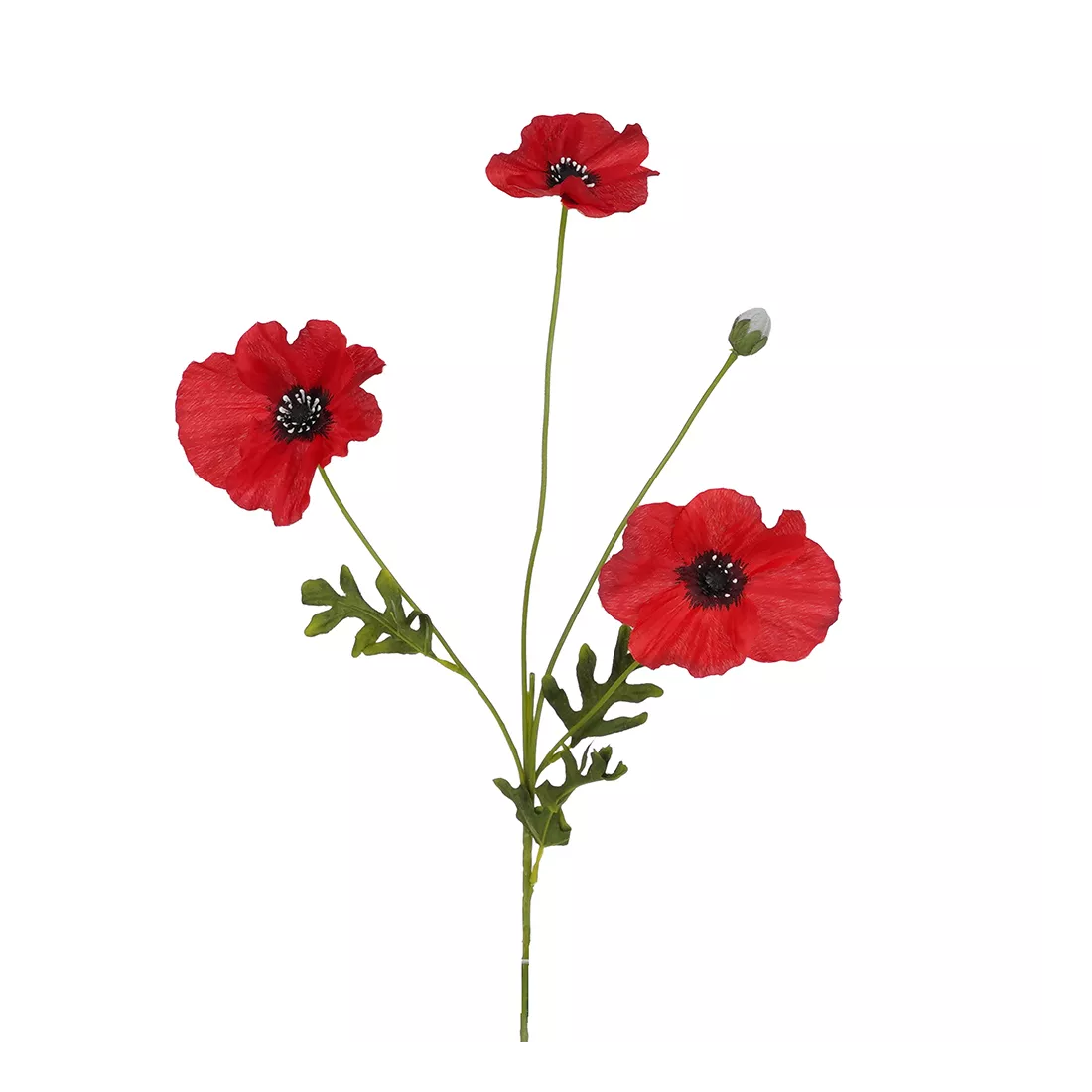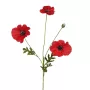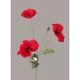 Autant le vrai coquelicot des jardins, des terrains sauvages est délicat et impossible à garder; autant nos faux coquelicots n'ont pas de limite pour leurs utilisations. Cette branche possède 3 beaux fleurons au cœur noir pour le réalisme. La tige se plie et se module facilement pour s'adapter à vos créations. En bouquet, pour donner tout son potentiel coquelicot, il est mieux d'en associer plusieurs; au moins 3 ou 5. Il existe un deuxième coloris plus orangé que l'on peut mélanger avec le rouge, mais nous conseillons au moins une quantité de 8 ou 10 brins pour que cela soit esthétique, sinon le couplage n'a pas grand intérêt. Pour accommoder avec du feuillage, choisir des petites feuilles artificielles légères, des imitations d'herbes, et même des fausses baies ou des branchages. Garder l'esprit sauvage!