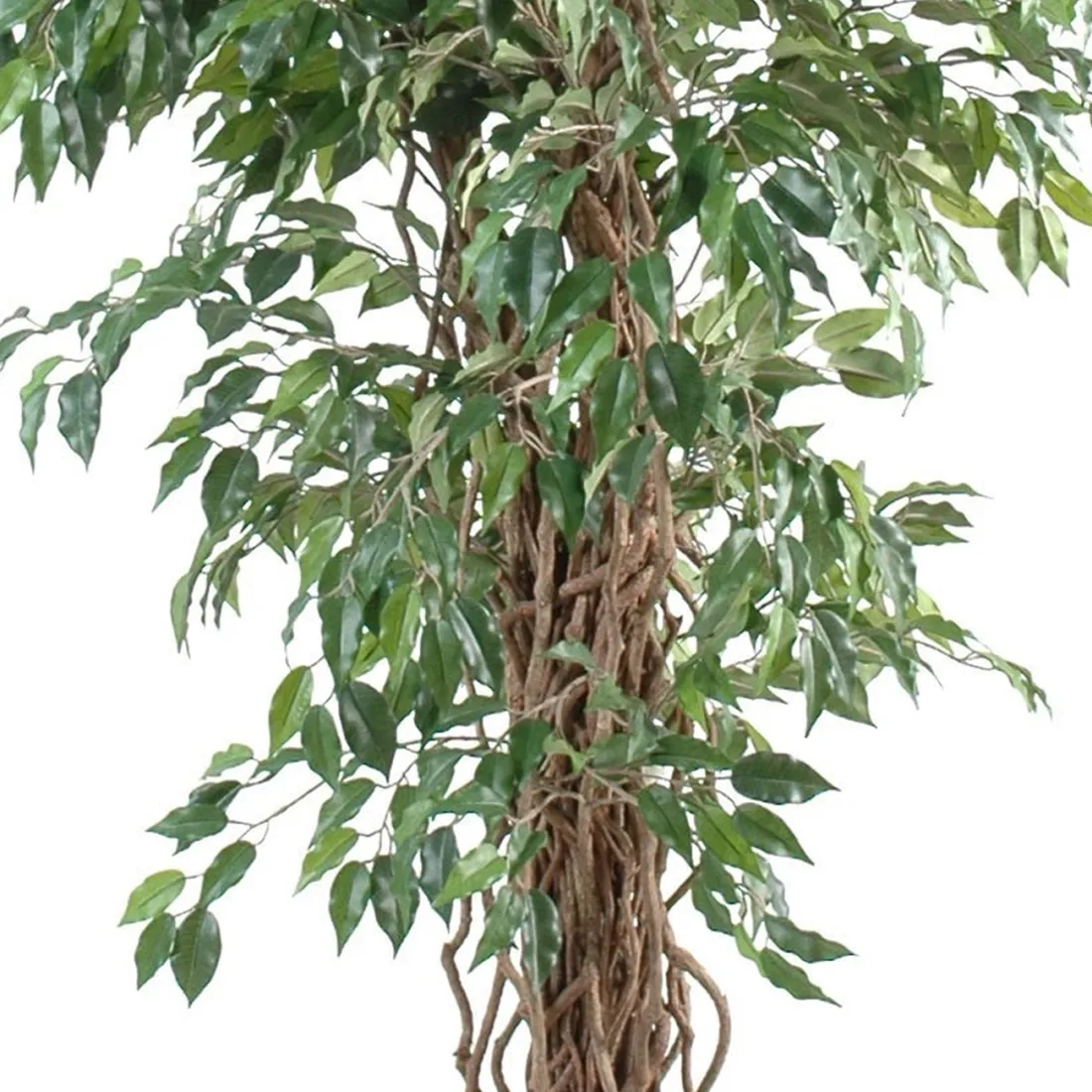 Ficus artificiel liane petites feuilles est composé d'un ensemble de lianes tressées (multitroncs en bois) et d'un feuillage en tergal, soit en vert (trois tons de vert) soit panaché (vert/crème), décliné en trois dimensions de 150 à 210 cm de hauteur (plantes artificielles )