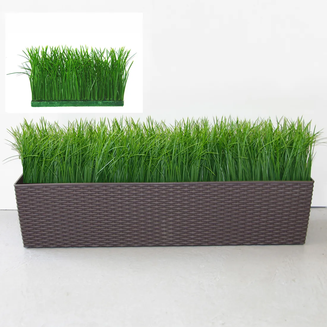 Herbe de pré artificielle de 19 cm de hauteur fixé sur un socle bois de 29.5 cm de longueur sur 7.5 cm de largeur