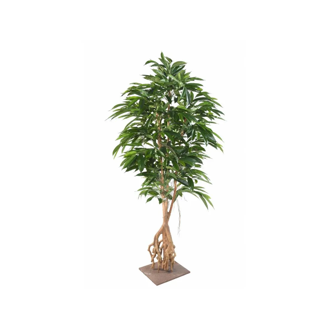 Ce ficus artificiel longifolia racine est composé d'un tronc en bois naturel et fibre de verre et d'un feuillage vert en tergal. de 180 ou 210 cm de hauteur avec une hauteur sous feuillage de 60 ou 75 cm et une envergure de 80 ou 100 cm selon taille. livré sur une plaque en bois  plantes artificielles