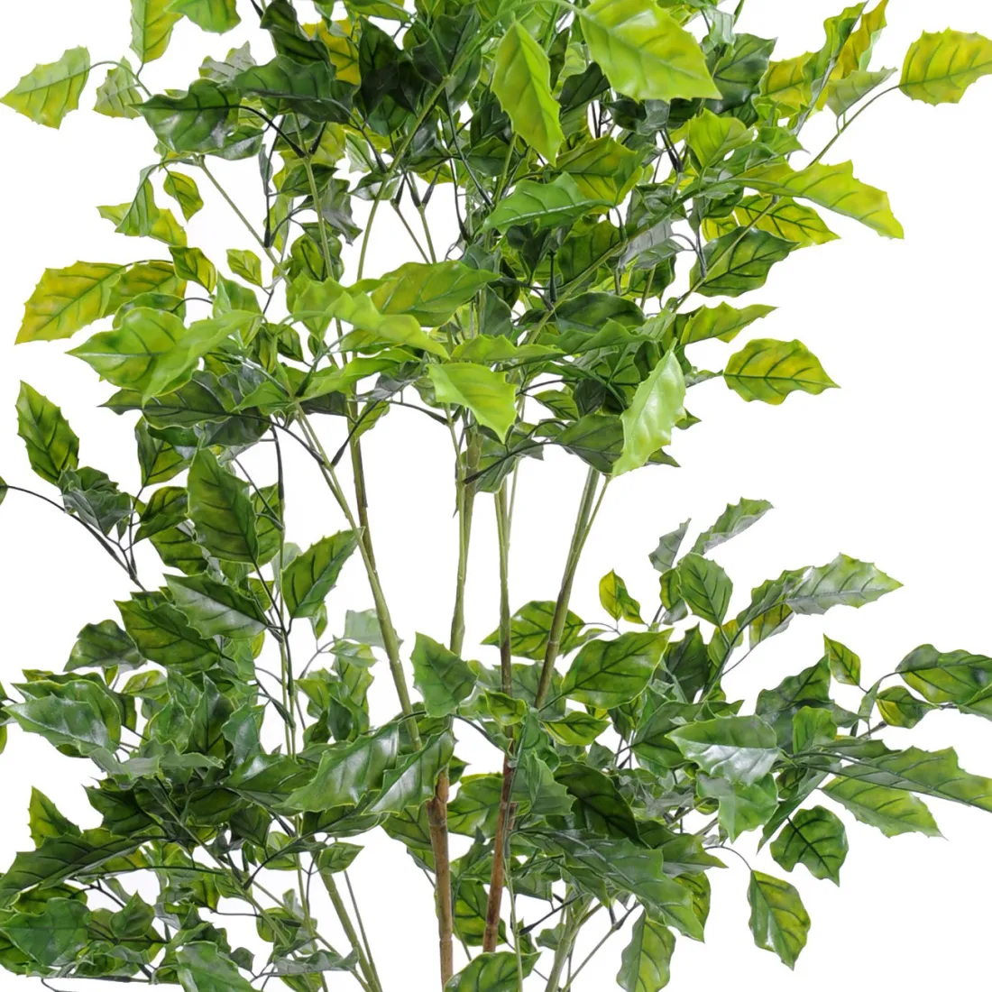 Ce faux arbuste amène à votre décoration une touche d'exotisme. placé au cœur d’un massif avec d’autres plantes artificielles comme des palmiers artificiels ou en isolé dans un pot il végétalisera votre terrasse, votre balcon...