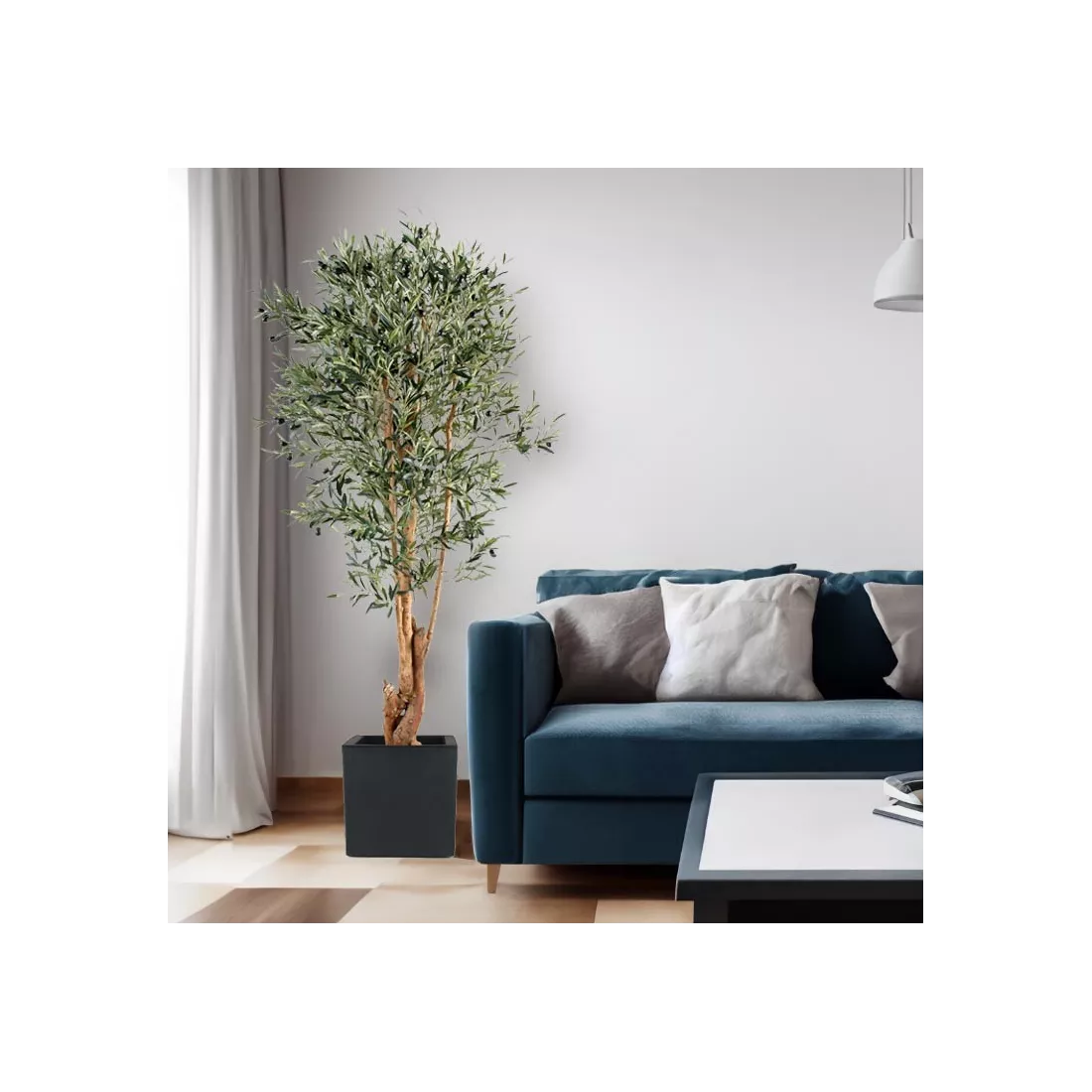 Les oliviers sont des arbustes typiques des paysages méditerranéens. Ces oliviers artificiels sont pourvus de fausses olives de couleur noire et verte pour imiter la plante naturelle. Ce petit arbre ne demandera aucun entretien et amènera une touche méditerranéenne. Son tronc noueux ajoute une originalité à cet olivier.