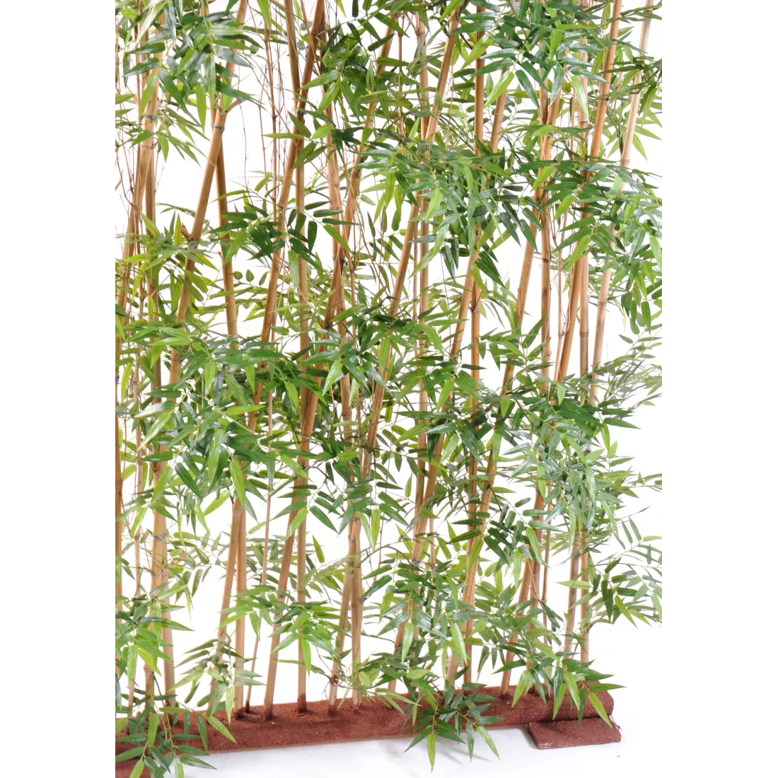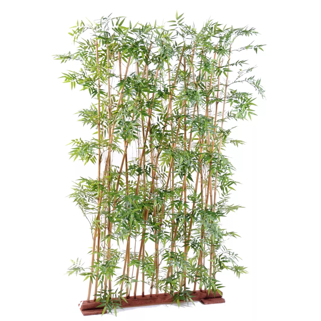 Haie de bambou artificiel oriental dense est composé de cannes de bambou naturel et d'un feuillage vert en tissu. Décliné en 2 tailles 110 et 150 cm de hauteur pour 90 cm de longueur et 30 cm de largeur. Livré sur socle de 90 cm de longueur par 18 cm de largeur( plantes artificielles ) feuillage dense. Livré en un seul morceau, cannes fixées sur socle ( plantes artificielles ) Opacité : 80%