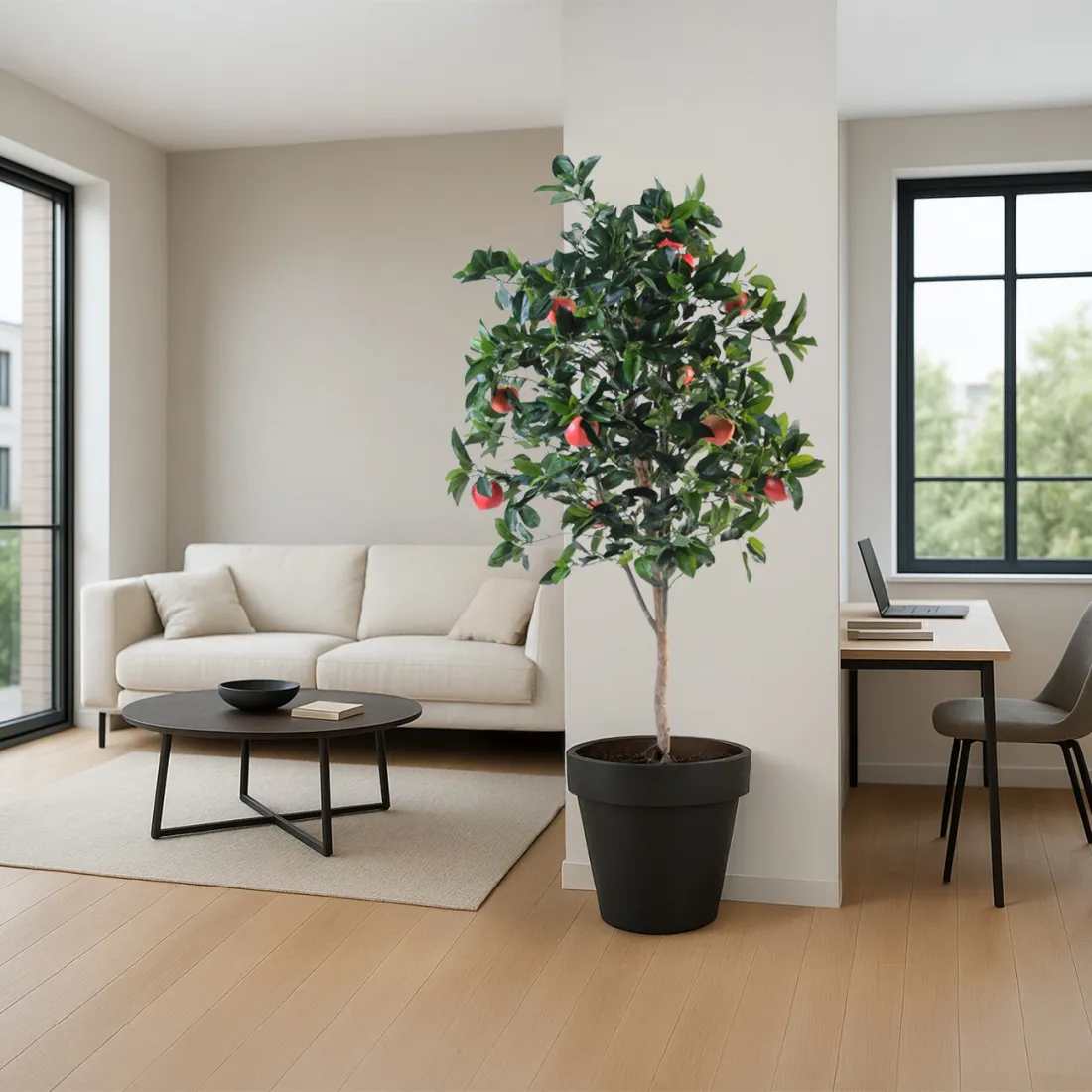 MANDARINIER artificiel arbre 110 à 170 cm en pot mis en situation MANDARINIER artificiel arbre 170 cm dans un salon MANDARINIER artificiel arbre 110 à 170 cm en pot