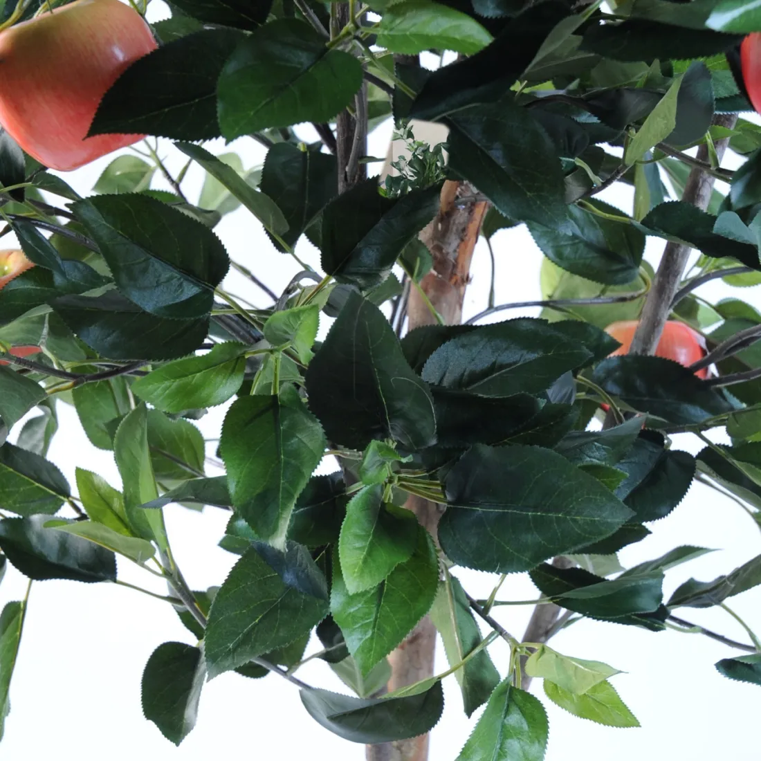 Superbe pommier artificiel de 180 cm de longueur pour environ 100 cm d'envergure avec fruits artificiels. il est dotée de jolies feuilles vertes ciselées, des feuilles artificielles plus claire, plus petite, pour les jeunes pousses afin de le rendre encore plus réaliste et porte des pommes en PVC au ton rouge.