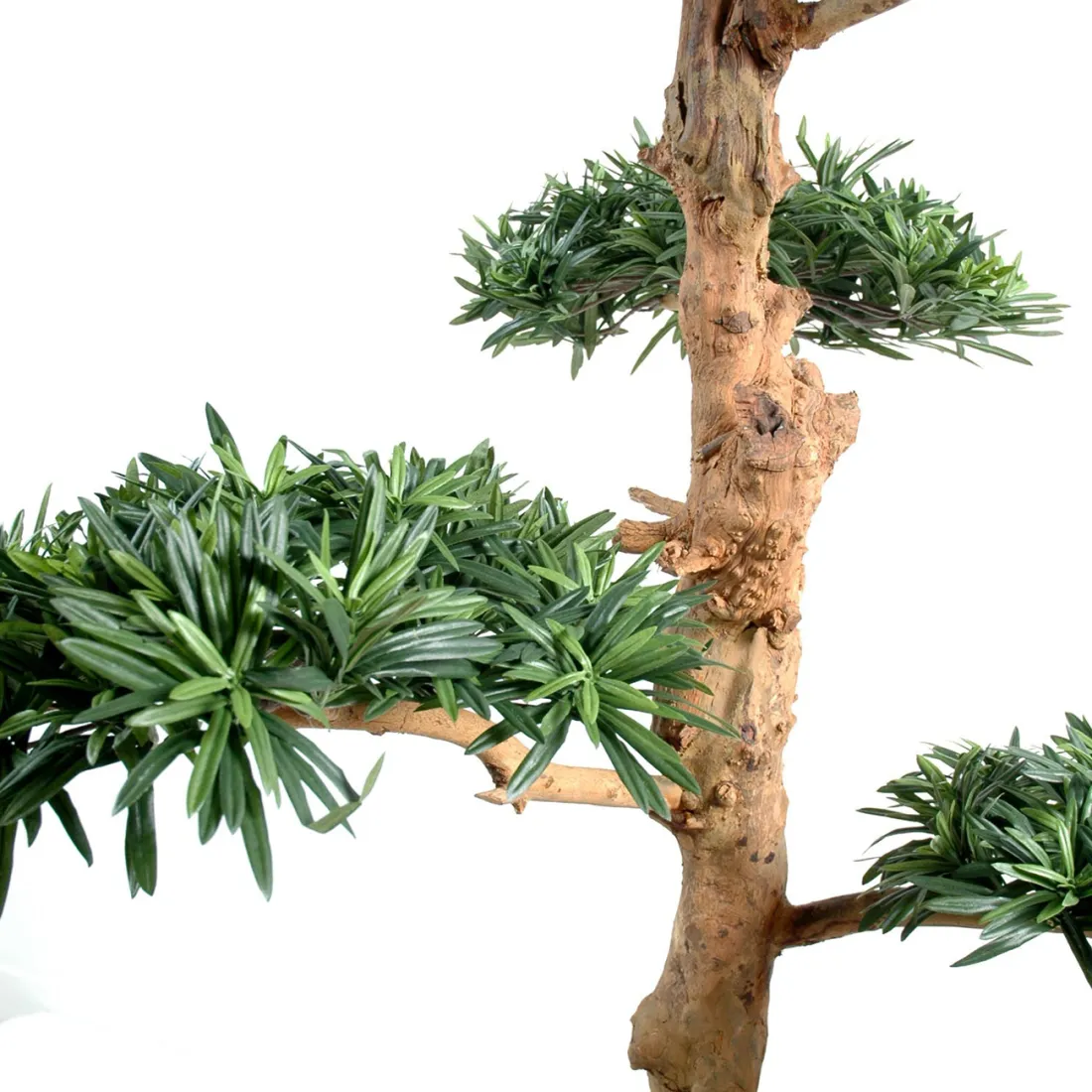 Ce podorcapus artificiel constitué de troncs en bois naturel et d'un feuillage vert en polyester, tissu tergal. Décliné en deux dimensions 150 à 180 cm de hauteur. livré dans un pot PVC noir lesté servant de support de plantation, plantes artificielles.