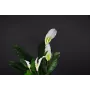 Surnommé « fleur de lune » ou « faux arum », le Spathiphyllum est une plante originaire des forêts tropicales humides d’Amérique Latine appartenant à la famille des Aracées. Cette belle plante artificielle ornementale est très décorative grâce à l’association d’un feuillage synthétique haute couture avec d’élégantes fleurs blanches artificielles. Les feuilles associent différentes teintes de vert entrecoupées par de belles nervures. Les fausses fleurs aux dimensions généreuses sont composées d’une spathe blanche et jaune qui entoure un épi central. Aucun entretien nécessaire, c’est une très belle plante verte fleurie artificielle qui a l’avantage de ne jamais se faner et vous apportera donc couleur et gaieté durablement.