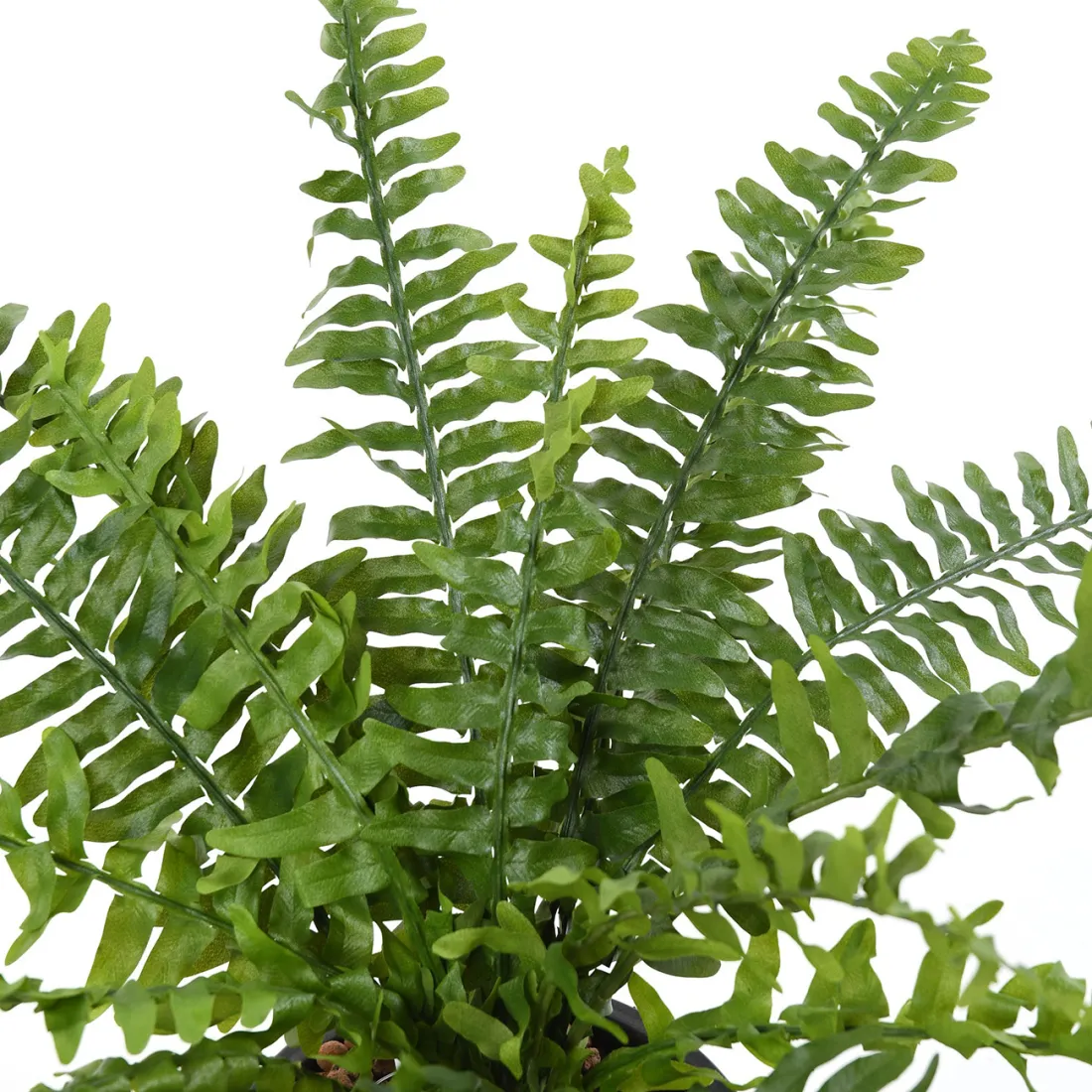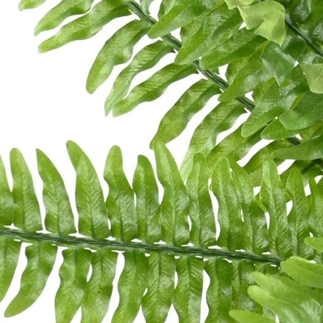 Plante vivace à feuillage persistant et décoratif originaire des forêts tropicales et marais d’Amérique, la fougère de Boston aussi appelée Nephrolepis exaltata, est généralement utilisée comme plante ornementale et dépolluante dans nos habitations. Grâce à son feuillage synthétique dense et touffu, cette imitation fidèle au naturel dispose de belles feuilles artificielles en tissu, allant du vert sombre au vert clair, fixées sur des tiges en métal recouvertes de PVC vert pour faciliter sa mise en forme. L’avantage c’est qu’elle n’aura besoin ni d’arrosage, ni de taille, pour verdir durablement vos envies !