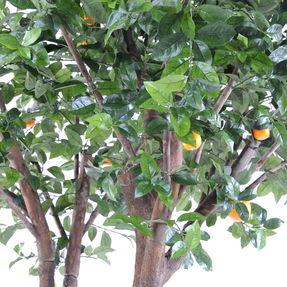 Oranger artificiel disponible en deux dimensions 150 et 180 cm de hauteur pour une envergure de 70 et 90 cm. Le tronc est en bois, son feuillage est en textile et ses oranges ( de 4 à 8 cm) sont en polystyrène recouvert d'une peau pvc granuleuse. Très belle imitation.
