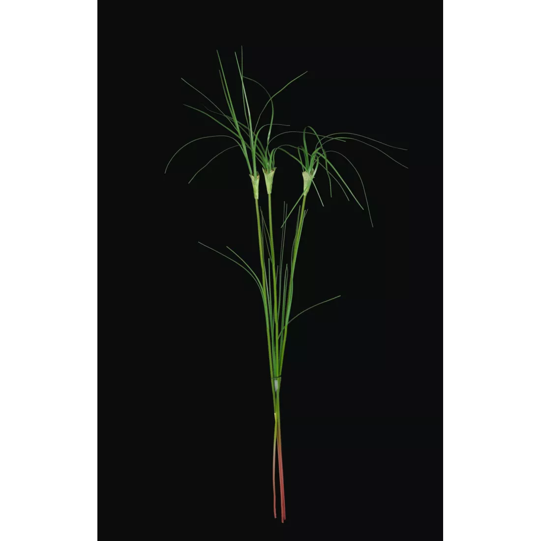 Cette tige de papyrus artificiel est vendue par 3 brins séparés. Comme pour le papyrus cyperus naturel, cette verdure est présentée avec une tige longue de 75cm surmontée d'une touffe de feuilles légères et disposées en étoile. Ce bouquet de papyrus n'est pas imposant, il est délicat et destiné à accompagner d'autres fausses fleurs notamment. Pour une ambiance fraiche et légère.