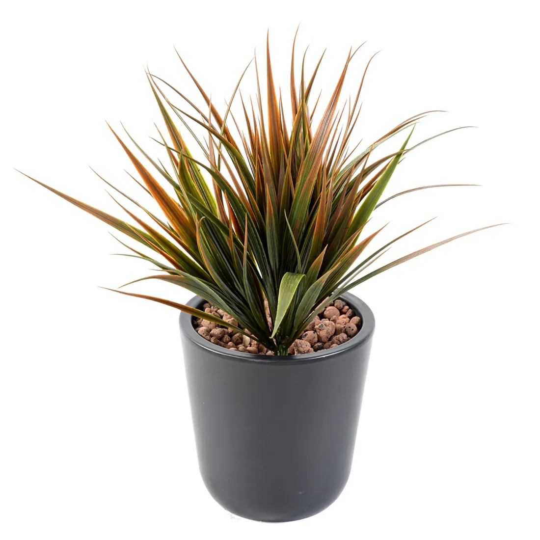 L'herbe artificielle large de couleur panachée vert/brun est l'imitation d'une touffe d'herbe. Parfait pour décorer les bacs près du sol. Son brin large la distingue des autres herbacées. Cette fausse herbacée en matière plastique convient aussi bien en intérieur qu'en extérieur pour vos balconnières par exemple. Cette végétation artificielle a une envergure de 30 cm, son feuillage passe de la couleur verte foncé au brun, ceci pour lui donner un aspect naturel et trancher avec les diverses plantes en mélange.