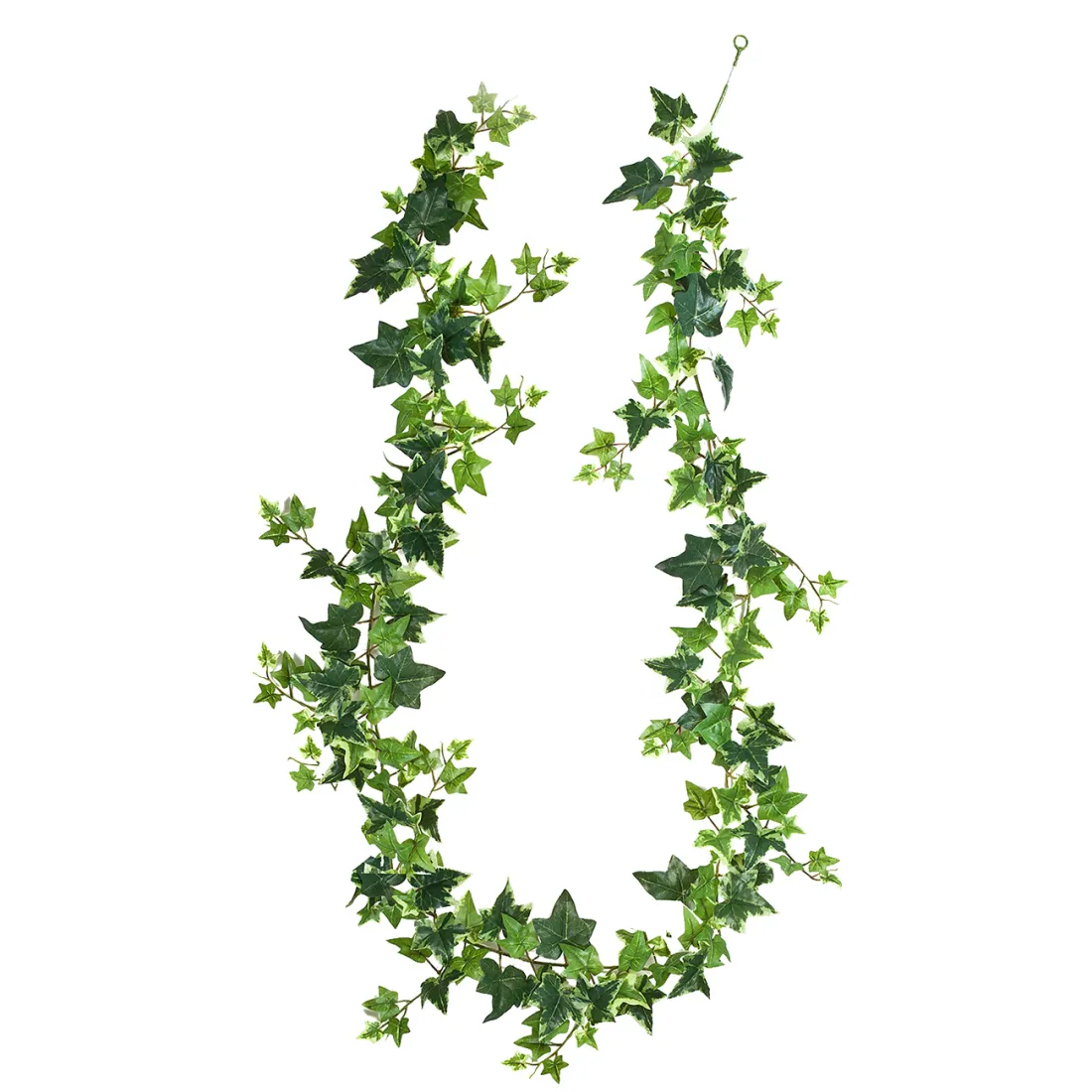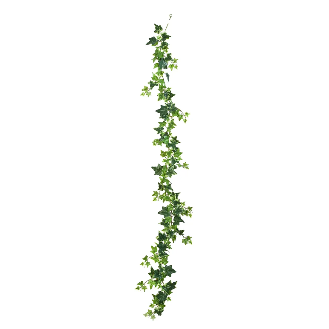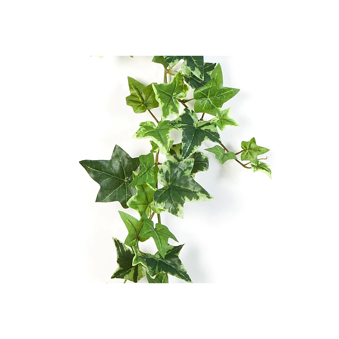 Faux lierre dont les feuillages synthétiques sont panachés de deux tons de vert. Le nom scientifique du lierre est Hereda, ce qui signifie "être attaché". Cette guirlande représente bien cette idée de liane qui court sur un support et que l'on fixe par endroit pour la maintenir dans la position souhaitée. Les feuilles en tissu, en forme d'étoile, sont de différentes tailles pour plus de véracité. Imitation de lierre commun que l'on admire dans les bois, à terre ou sur les troncs d'arbres. Déclinaison de ce lierre en plante retombante panachée ou en guirlande verte.
