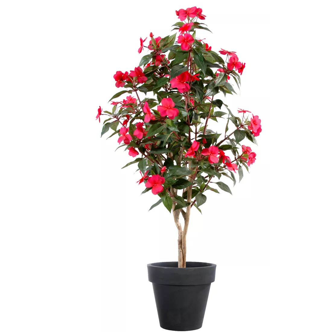 Ce faux arbuste est une belle imitation de la véritable impatiens. la finition est soignée. Son tronc est en bois, son feuillage et ses fleurs en tergal (tissu). Le tronc comporte plusieurs ramifications. Cette plante fleurie artificielle apporte de la couleur à votre décoration grâce à ses fleurons de teinte vive très naturelle. Cette plante artificielle est peu envahissante il est donc aisé de lui trouver un espace dans une chambre, un salon ou un couloir sombre. L'arbre factice est vendu dans un support plastique de base (pot PVC noir); la taille indiquée est comprise de la base du pot jusqu'au sommet de la plante.
