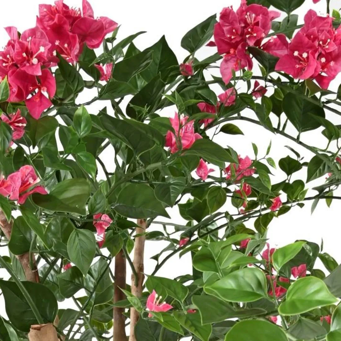Bougainvillée artificiel est composé d'un tronc en fibre de verre, de branches en bois naturel, son tronc est de 9 cm de diamètre et d'un feuillage en polyéthylène. 280 cm de hauteur pour une belle envergure de 220 cm. La hauteur sous branche est de 180 cm.Livré dans un support de fixation, pot PVC noir ( plantes artificielles )