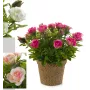 Ce rosier artificiel est composé d'un feuillage et de fleurs en tissu: Tergal. Il mesure 40 cm de hauteur (pot inclus) pour une envergure de 30 cm. Le petit rosier factice comporte 2 fausses fleurs ouvertes et un...