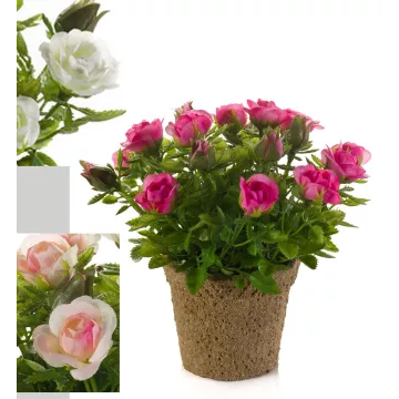La famille des rosiers artificiels est sans aucun doute la plus représentative des arbrisseaux fleuris de notre hémisphère nord. A l'origine églantier, cet arbuste sauvage a été largement hybridé pour obtenir des gammes très diverses. Les belles imitations de rosiers que nous vous proposons correspondent à quelques spécimens mimétiques. Elles ont plusieurs points forts, aucun risque de se blesser les épines sont douces, vous serez fleuri toute l'année, et vous n'aurez aucun entretien contrairement aux vrais rosiers qui sont sensibles aux maladies. Afin de parfaire les copies, certains sujets possèdent de jeunes pousses de feuilles ou des pétales faussement mangés par des bestioles indésirables dans le jardin.