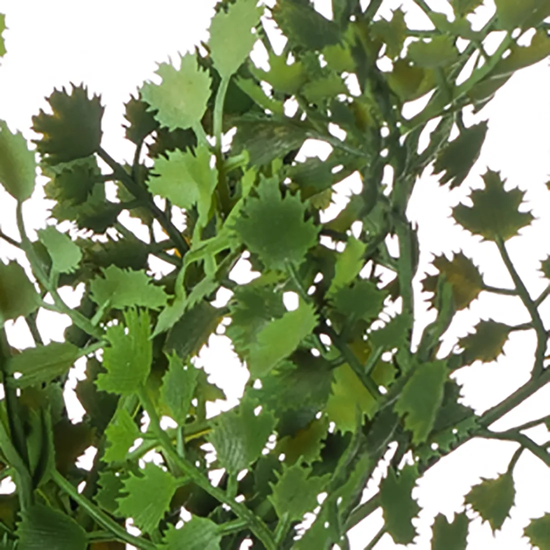 Suspension capillaire de 22 cm de hauteur pour une envergure d’environ 28 cm. Petite plante verte artificielle en suspension composée d’un feuillage en polyéthylène alliant différentes teintes de vert, fixé sur boule de mousse naturelle. Votre boule végétale à feuillage décoratif est livrée avec suspension.