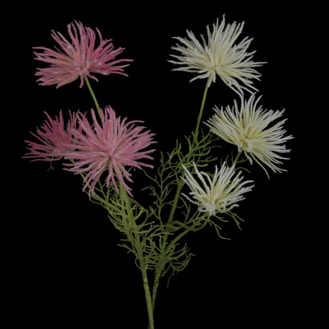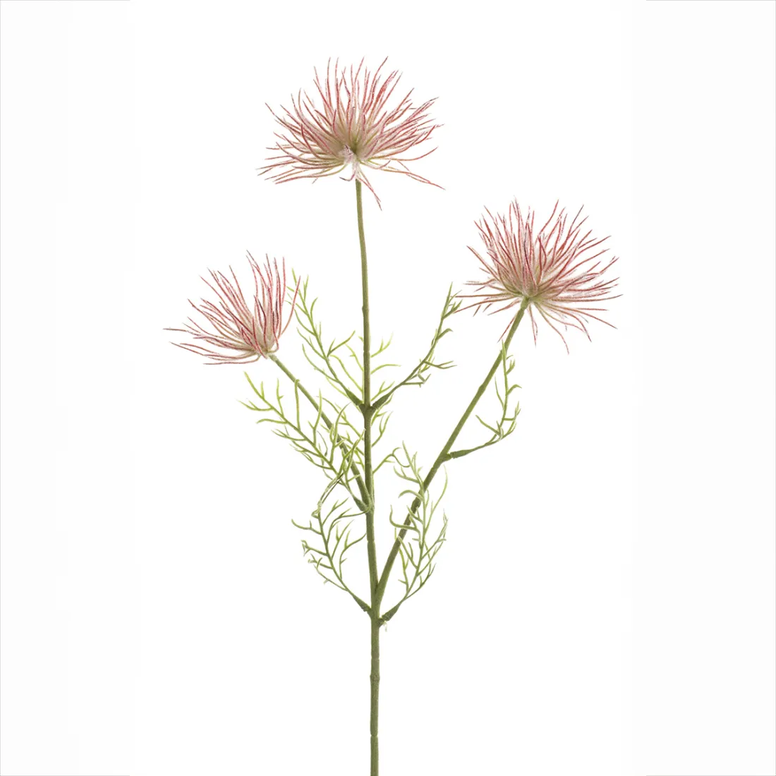L'akène de plante ou d'arbre, est en fait le résultat de la graine à l'état sec. Ici nous proposons un style de pompon aérien sous forme de structure filamenteuse légère, représentation de l'akène d'anémone version artificielle. Très décoratives ces fausses graines de fleurs se mélangent avec d'autres fleurons factices dans la création de bouquets. Les akènes amènent un style vaporeux, tout en contribuant au volume. A mélanger avec des fleurs artificielles de beau gabarit telles que hortensias et pivoines.