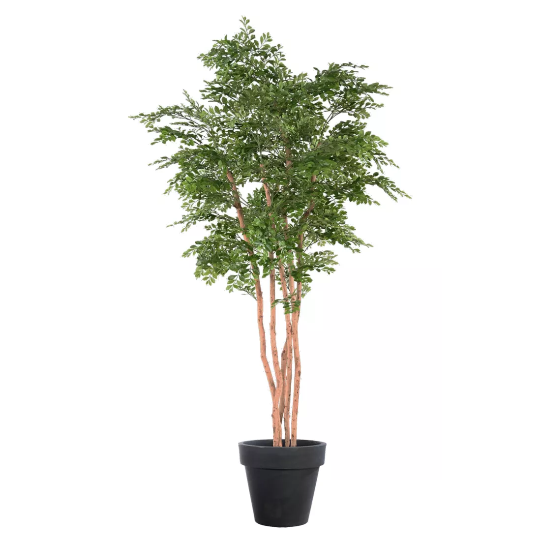 Acacia artificiel disponible en 150, 180 et 210 cm de hauteur pour une envergure de 80 à 110 cm. 5 troncs en bois naturel et son feuillage tissu polyester (tergal )  Livré dans un pot plastique lesté ( support de plantation) plante artificielle.