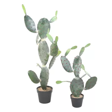 Cactus opuntia artificiel livré dans un support plastique (cactus artificiels)