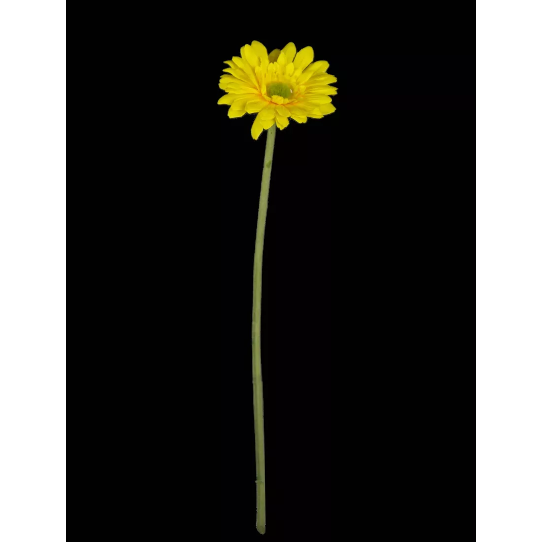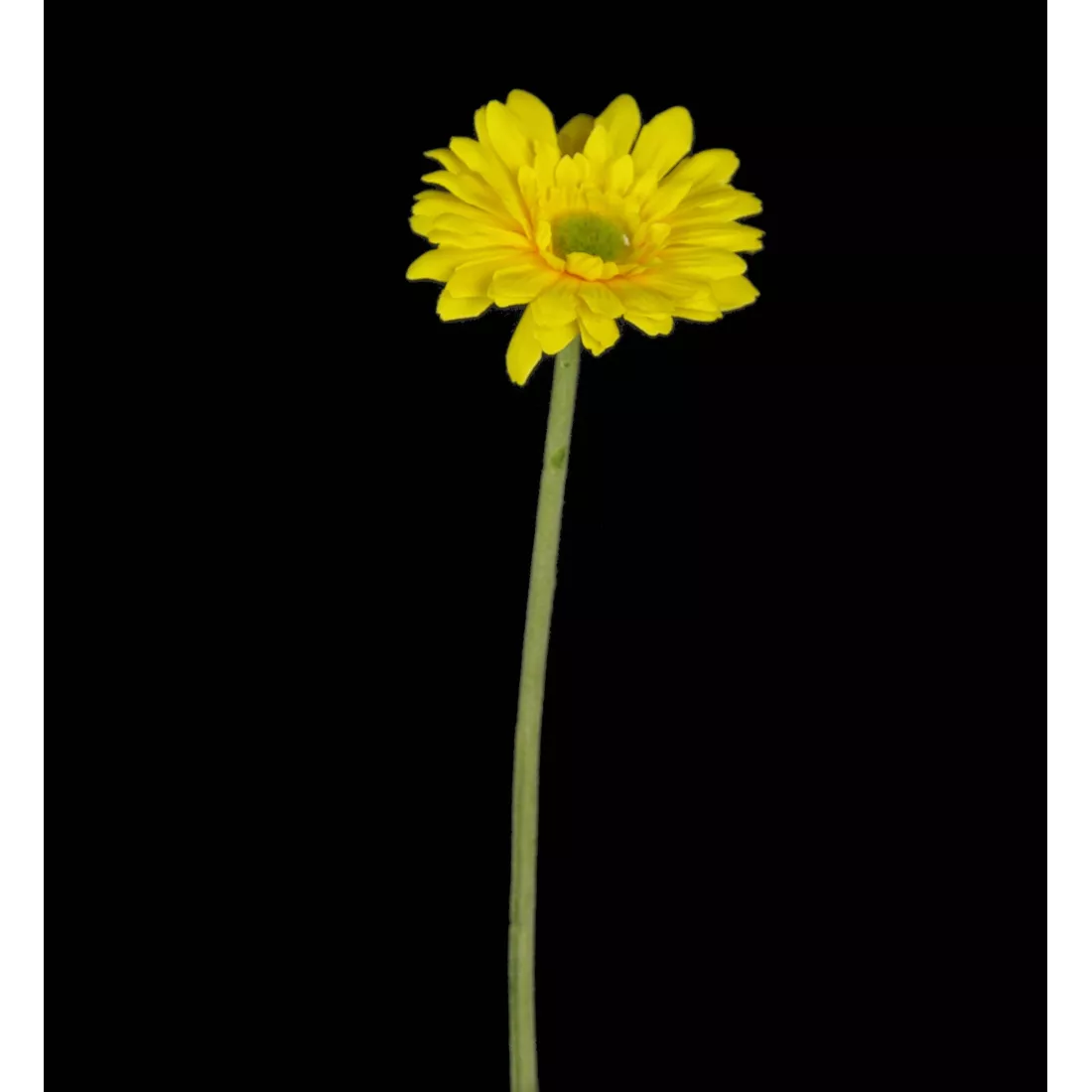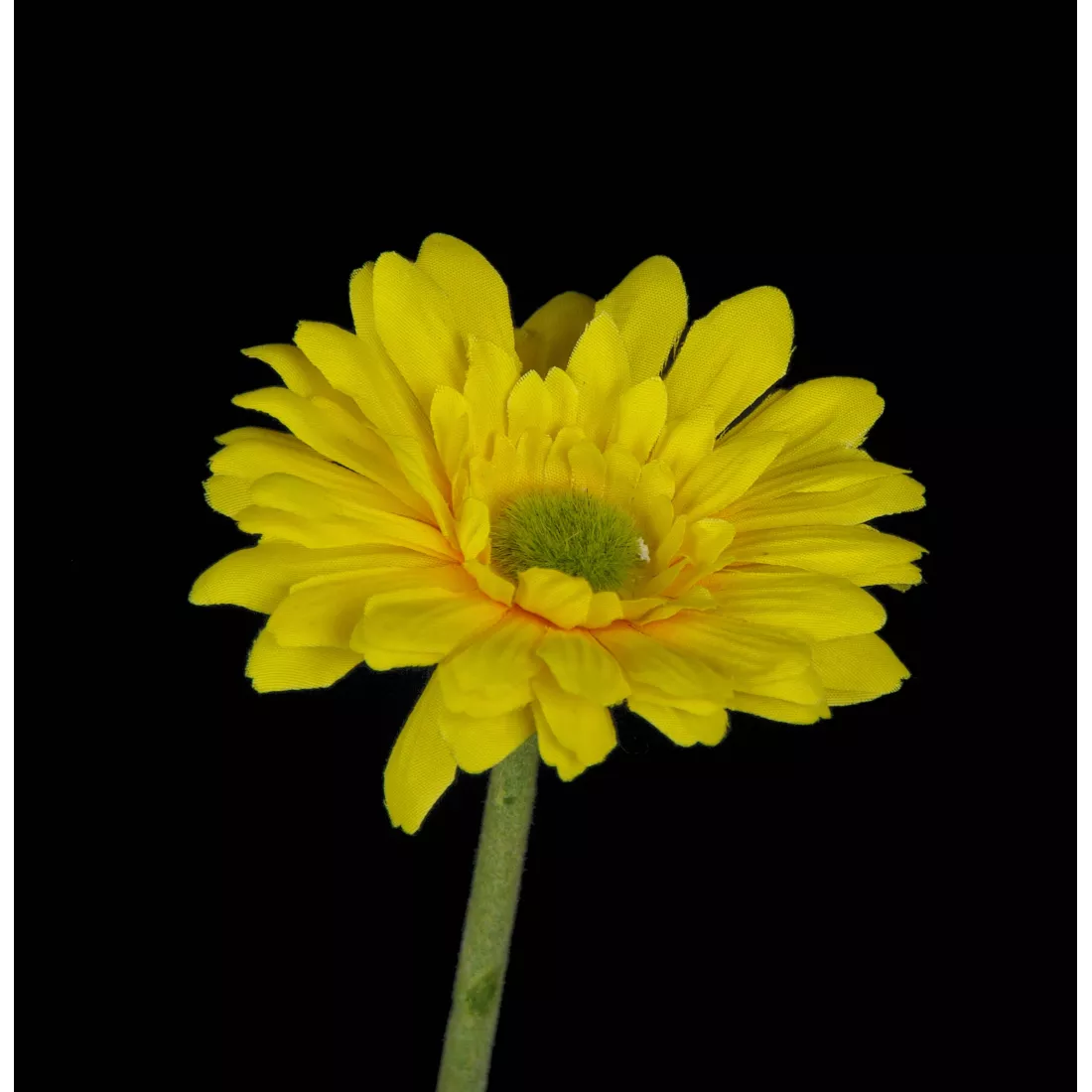 Gerbera mini décliné en plusieurs coloris, gerbera jaune, gerbera blanc, gerbera rouge, gerbera rose. La tige est duveteuse rase vert tendre. Le coeur en nylon est d'un beau ver assorti, à petits poils duveteux également. Les pétales sont en tissu polyester. Les faux gerbera décorent aussi bien les espaces modernes que les lieux rustiques. La tige est souple et peut se tordre pour vos créations.