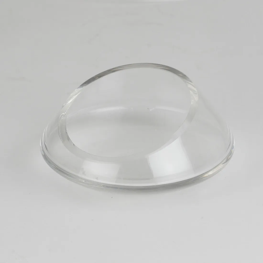 Vase rond hauteur 6.5 cm au plus haut et 4 cm au plus bas, diamètre 11,5 cm, ouverture 8 cm, fond bombé. Verrerie de qualité, épaisseur du verre 4 mm