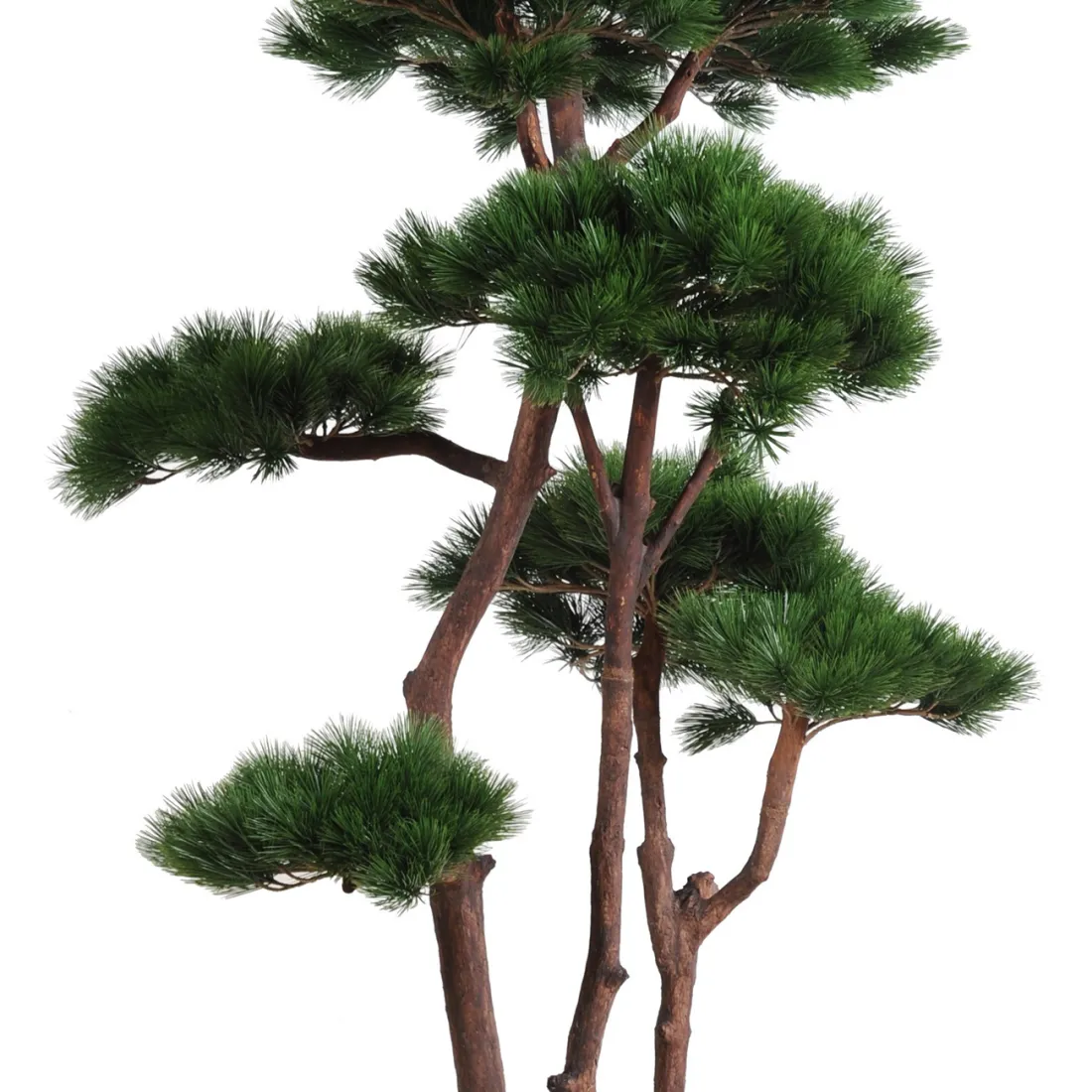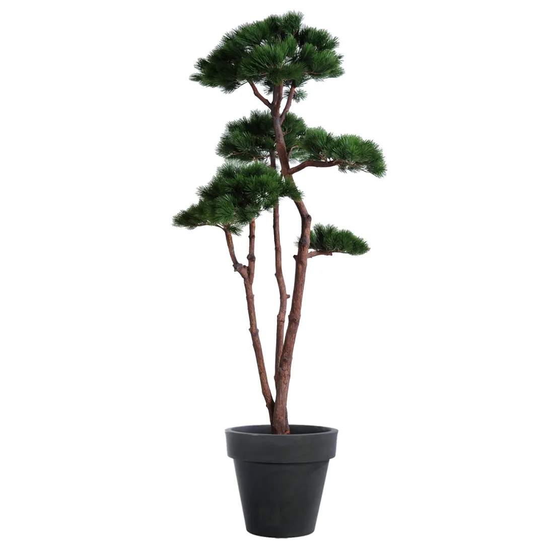 Ce pin artificiel multiple par ses 5 têtes touffues donne à cet arbre un esprit de bonsaï, jouant avec l'espace, créant du vide et du plein. Il peut être disposé en isolé dans un pot rond ou un pot carré, dans un salon, dans un local commercial, un restaurant, il apporte à votre décoration intérieur, un coté épuré, Zen mais également le coté méridional du pin. v.. Magnifique pin artificiel qui s'intègre parfaitement dans une décoration forestière, dans un massif vous pouvez l'agrémenter de fougères artificielles, de plantes chutes (rampantes) comme des lierres artificiels.
