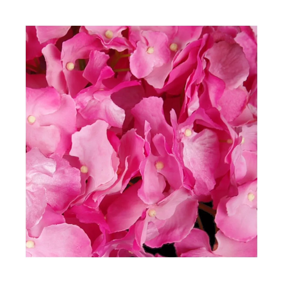 Ce gros hortensia artificiel possède une tête volumineuse et une tige courte. C'est une fleur artificielle haut de gamme qui allie la délicatesse des détails et l'élégance des couleurs. Les fleurons possèdent des dégradés de rose propre à chacun. Ils sont conçus en polyester d'aspects mélangés satiné et mat. La tige imite de manière réaliste la tige d'un hortensia naturel qui aurait été coupée dans le jardin. Le bas légèrement marron copie le coté ligneux de la plante, tandis que la partie supérieure est verte et parsemée de pseudo bourgeons.