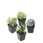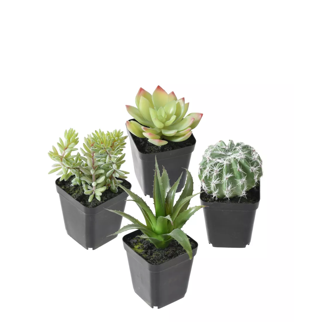 La taille de ces succulentes les place dans les catégories de petites plantes. Vous pouvez choisir chaque modèle séparément ou recevoir les 4 pièces assorties, un article de chaque. De belle imitation, ces fausses plantes grasses bien réalisées vous feront penser aux succulentes naturelles. Il est possible de les mélanger avec d'autres cactées de la même rubrique, par exemple l'Echeveria ou l'Agave. Au niveau des proportions, il ne serait pas judicieux de les associer avec les cactées de grande taille. Possibilité d'enlever le pot si nécessaire.