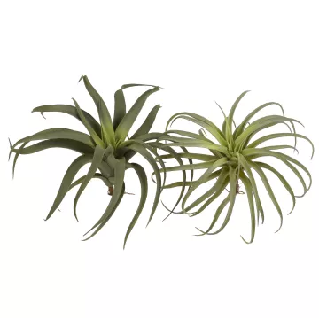 Tillandsia artificiel mesurant 26 cm de hauteur pour une envergure d’environ 30 cm. Cette petite plante verte synthétique convient pour usage en extérieur grâce à son feuillage en plastique résistant composé de longues feuilles charnues et étroites. Livrée sans pot, elle est munie d’une racine qui vous facilitera la mise en situation (en suspension, planter…).